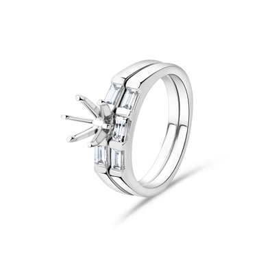 OROITALIA set of engagement and wedding rings in 18kt white gold, size US 6 1/2, with 5 natural BAGUETTE cut diamonds, 0.48ct, color F-G, VVS2 clarity.