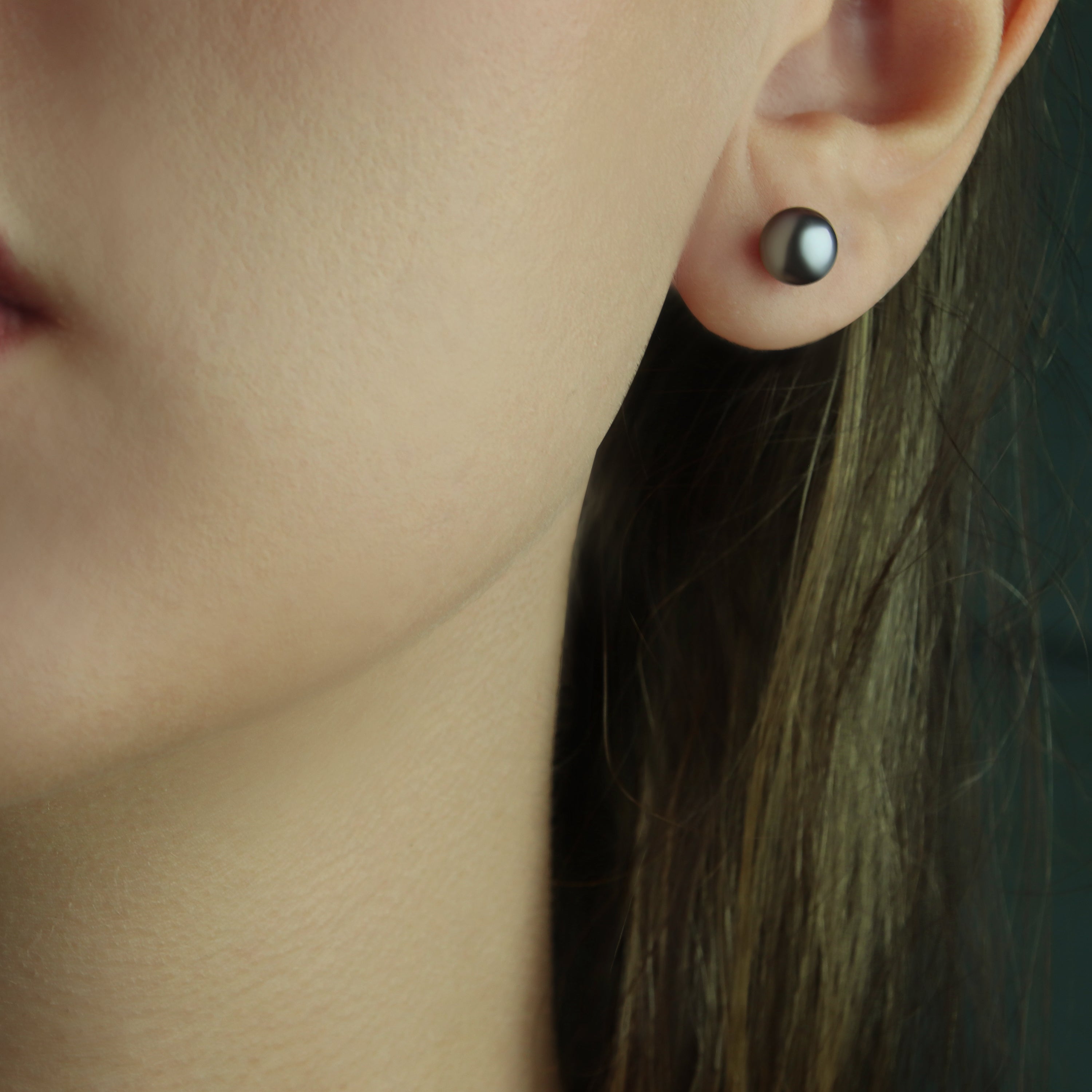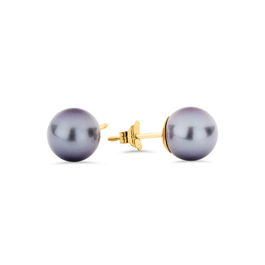OROITALIA pearl studs in 14kt yellow gold, butterfly clasp, with 2 cultured tahiti pearls ROUND cut, Black color.