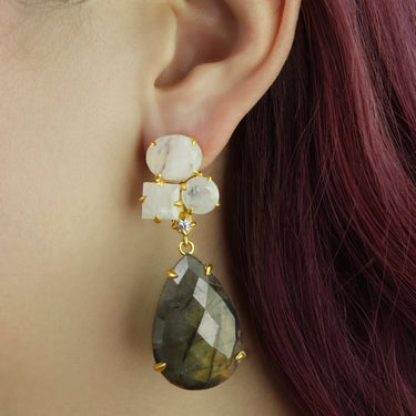 GIOVE MIO splendore dangle earrings in 925 silver plated in 18kt yellow gold, butterfly clasp, with quartz.