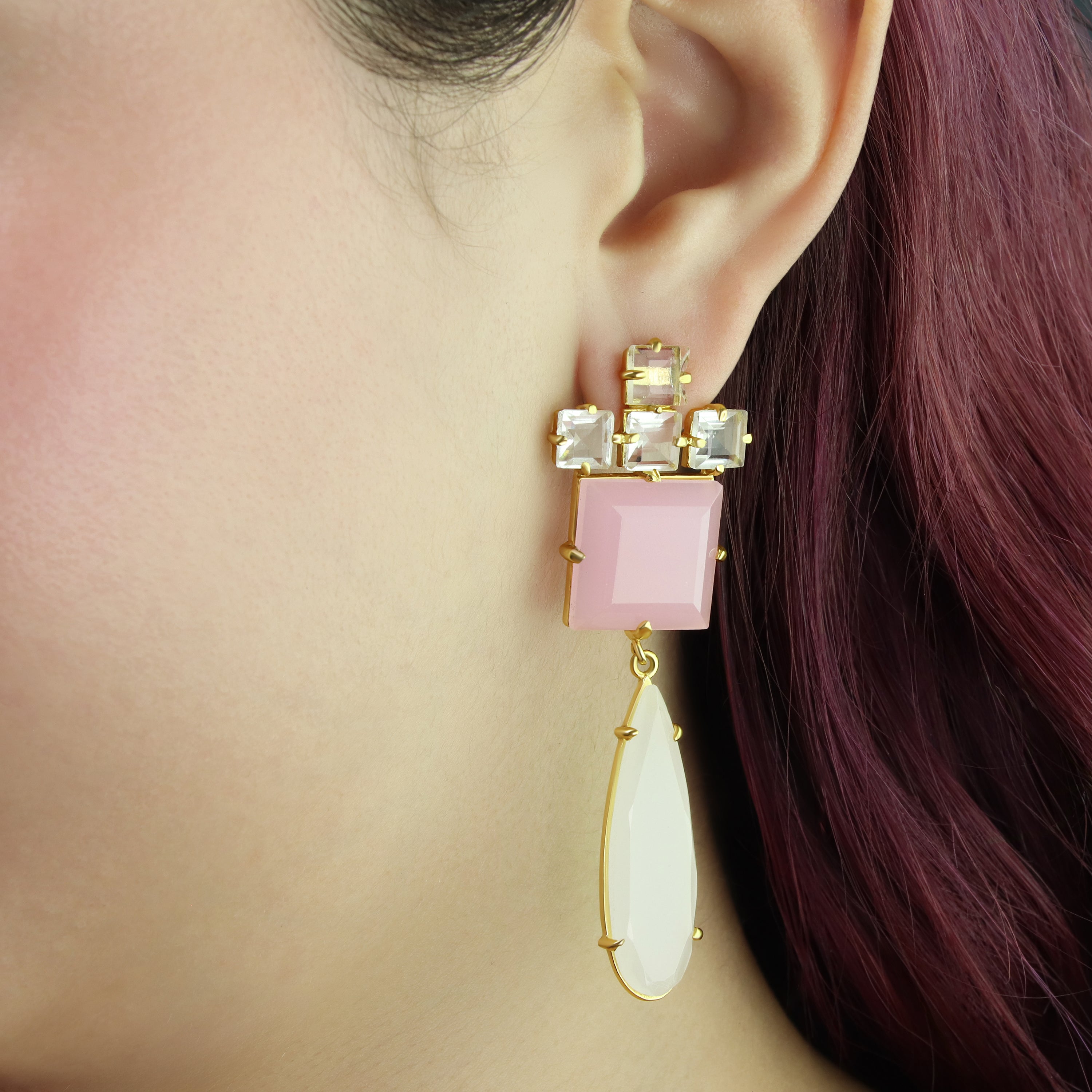 GIOVE MIO Venusina Hanging Earrings in 925 Silver Plated in 18Kt Yellow Gold with Quartz.