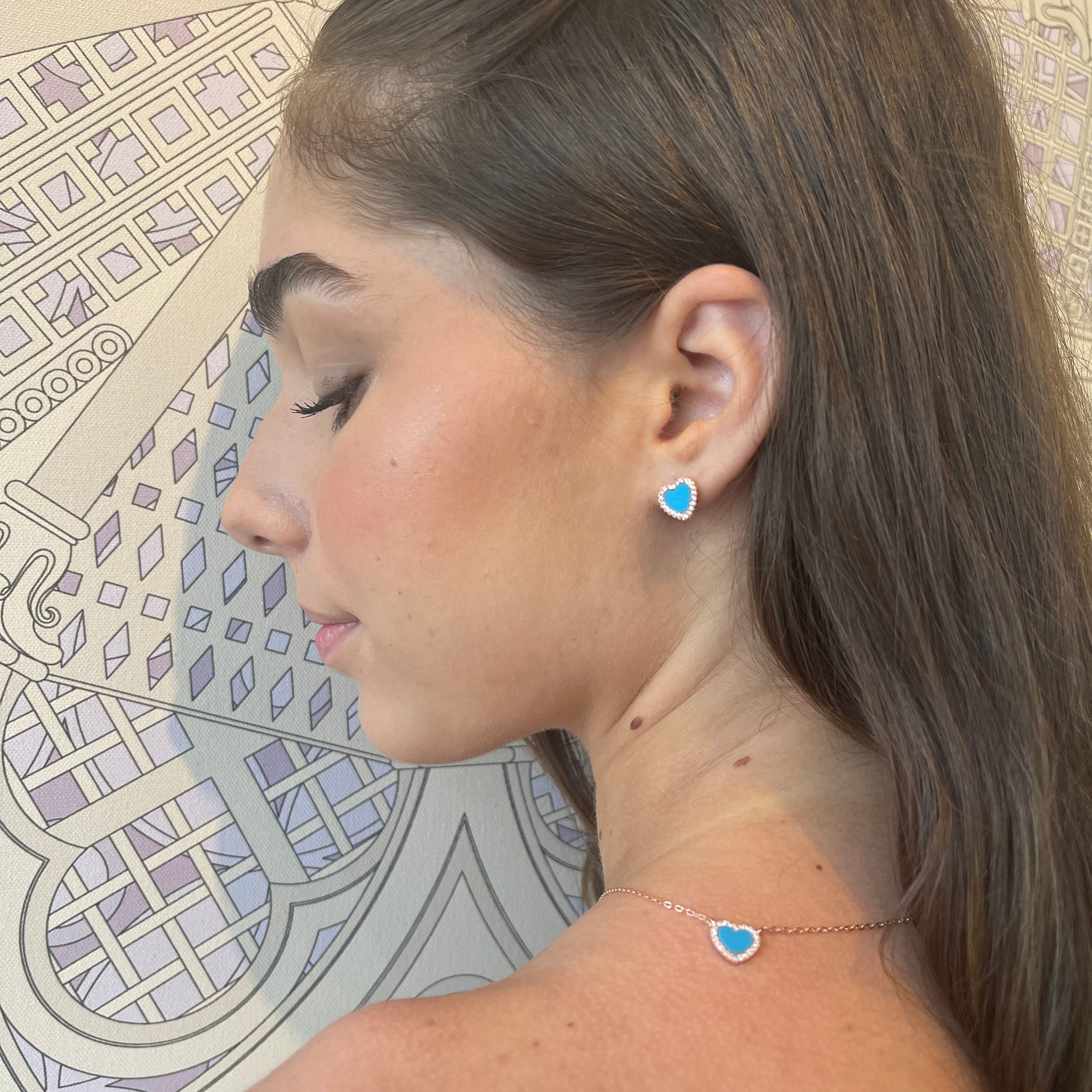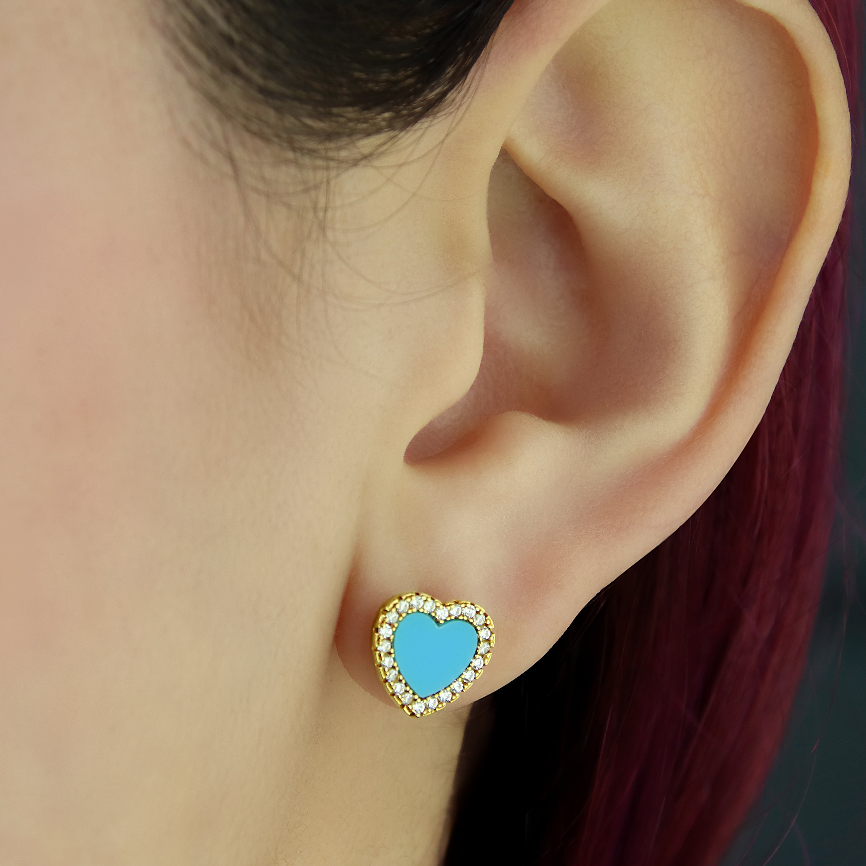 GIOVE MIO Studs Cuore Mio Turquoise in 925 Silver Plated in 18Kt Yellow Gold.