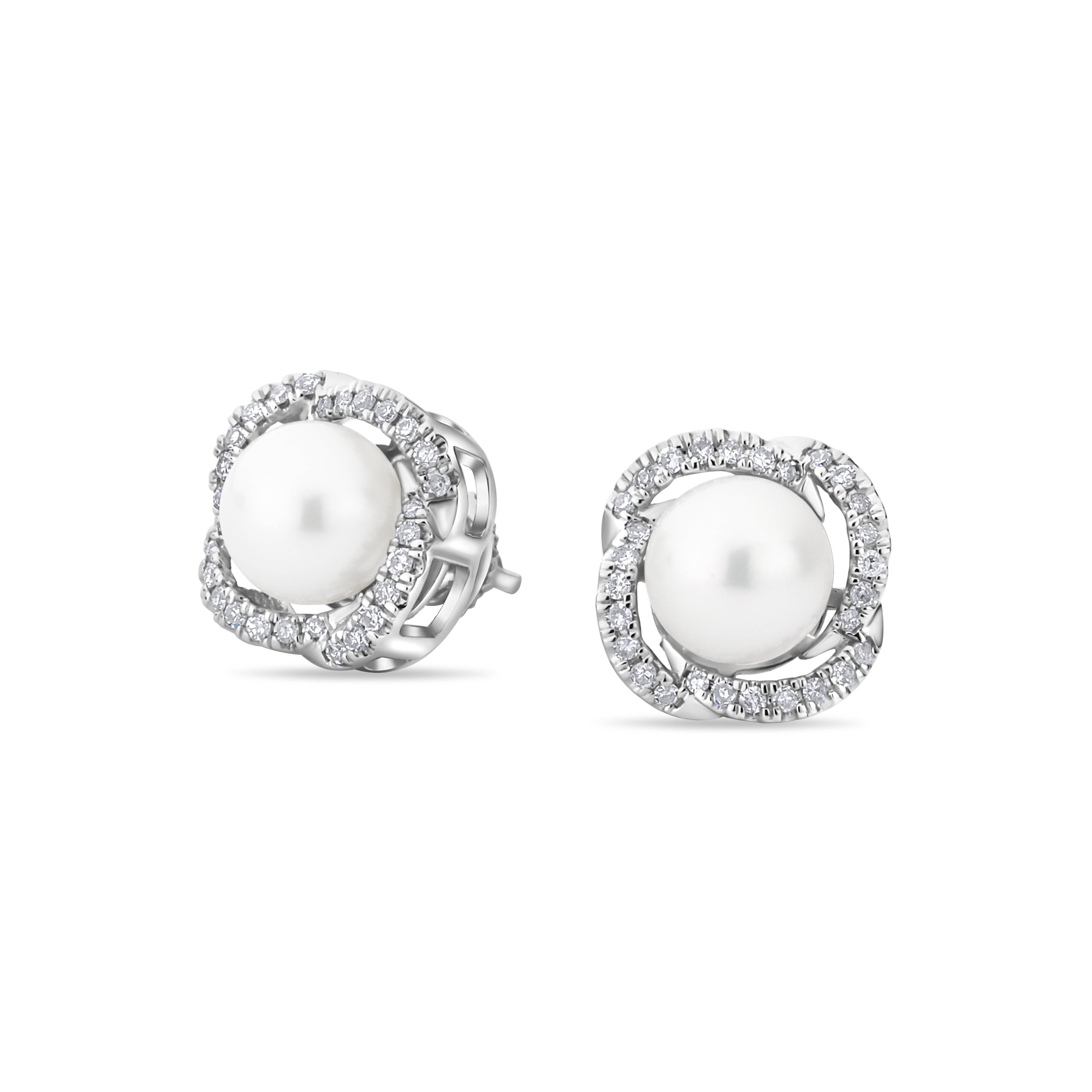 OROITALIA 14Kt White Gold Earrings with Akoya Cultured Pearls and Natural Diamonds.
