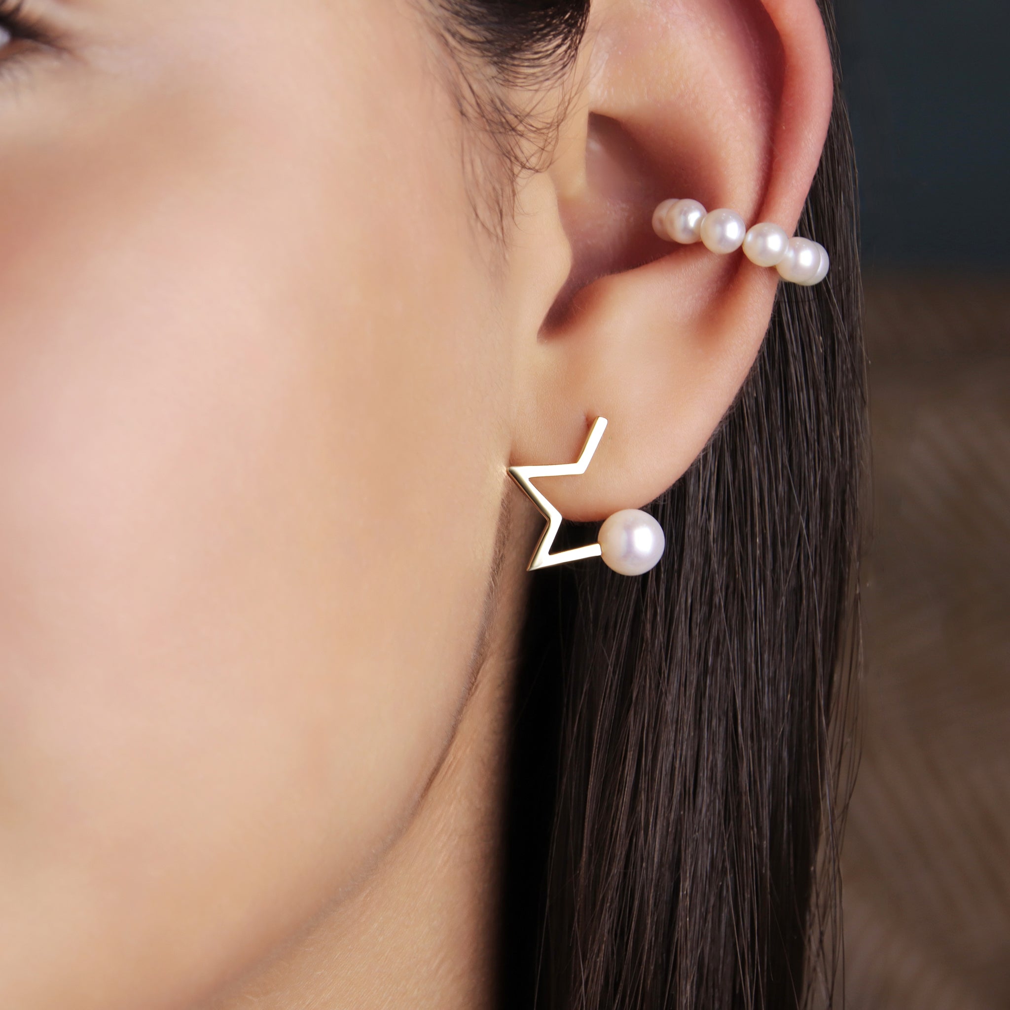 GIOVE MIO Fashion Star Earrings in 18Kt Yellow Gold with Freshwater Cultured Pearls.