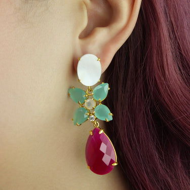 GIOVE MIO Hanging Earrings in 925 Silver Plated in 18Kt Yellow Gold with Quartz, Chalcedony and Mother of Pearl.
