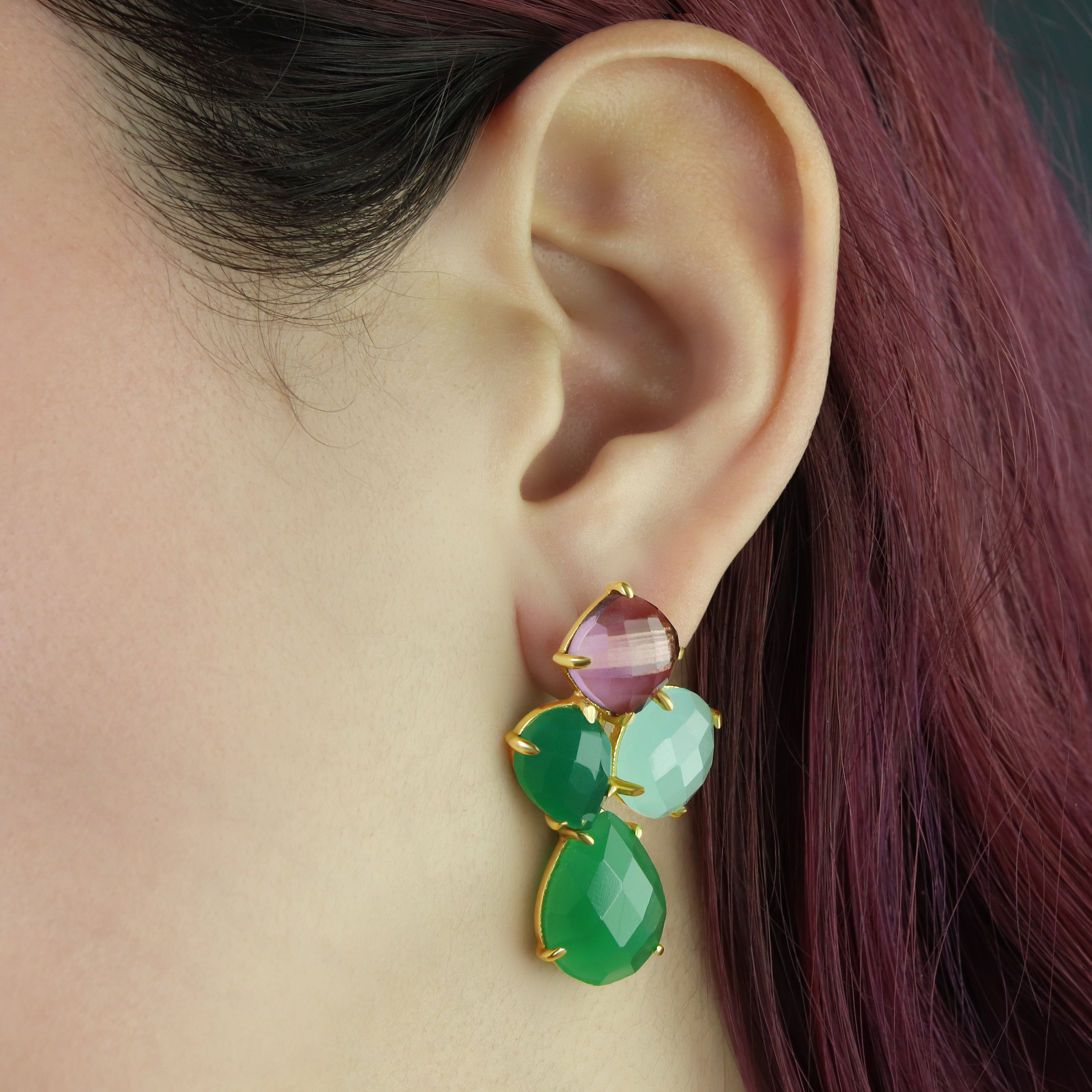 Keep your jewelry away from harsh chemicals, cleaning agents, perfumes, hairsprays, and lotions, as these can dull the gemstones and tarnish the metals.