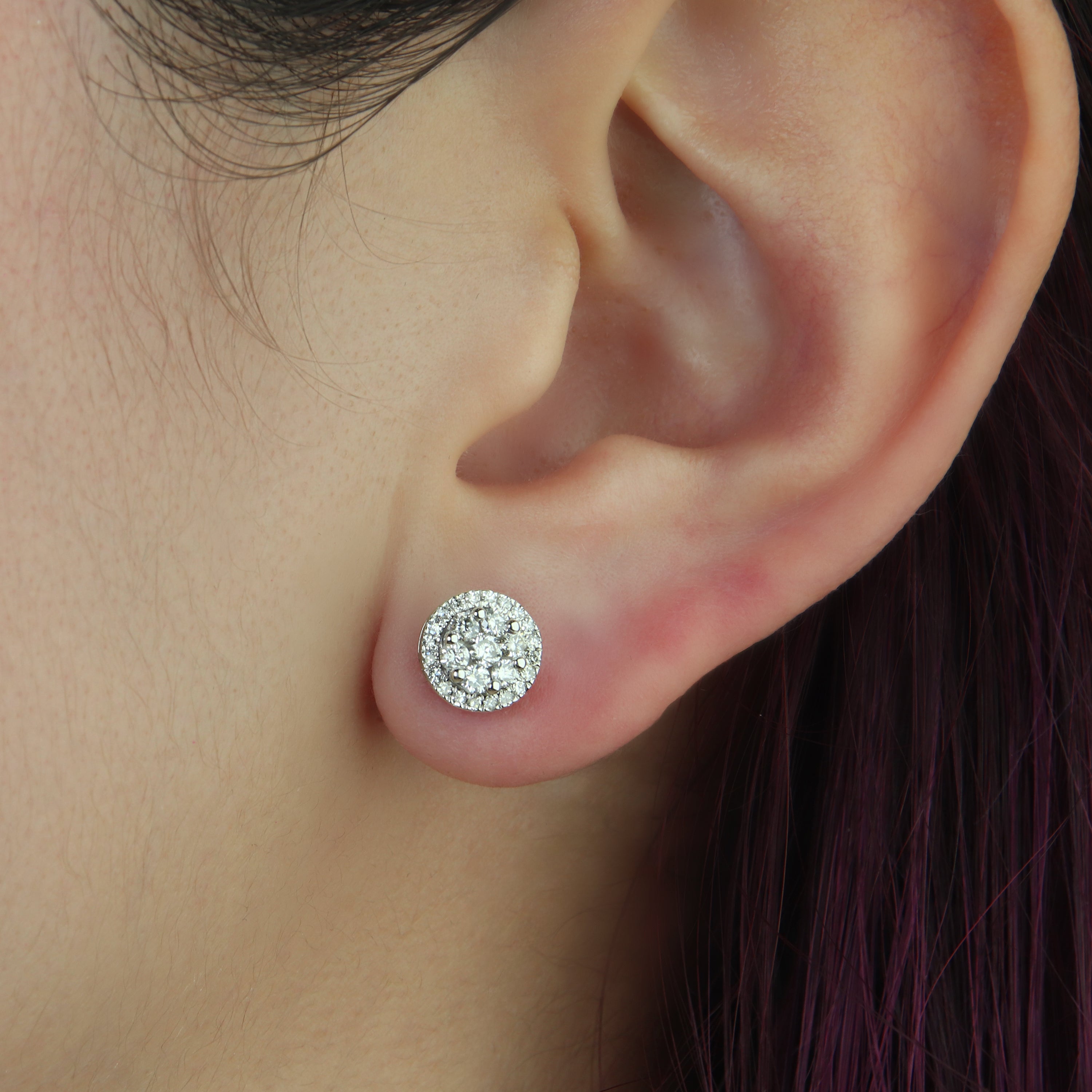 GIOVE MIO studs in 14kt white gold, screw closure, with 54 natural diamonds ROUND cut, 0.50ct, color G-H, VS clarity.