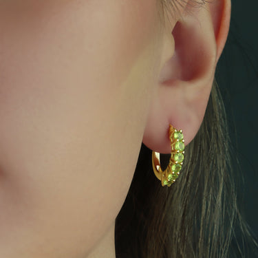 GIOVE MIO hoop earrings in 925 silver plated in 18kt yellow gold, top click closure, with 12 ROUND cut peridots, 1.44ct.