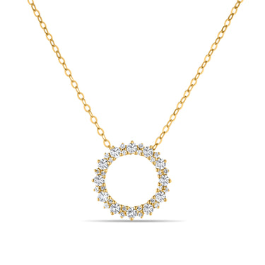 GIOVE MIO forzatina chain with circular charm and gems in 14kt yellow gold of 45cm - 1.2mm, lobster clasp, with 12 white topaz ROUND cut and 24 white topaz ROUND cut.