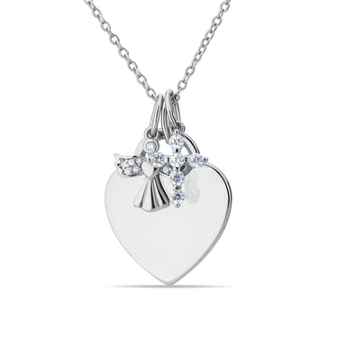 GIOVE MIO Chain with Cross, Angel and Heart Charms in 925 Silver with Cubic Zirconia.