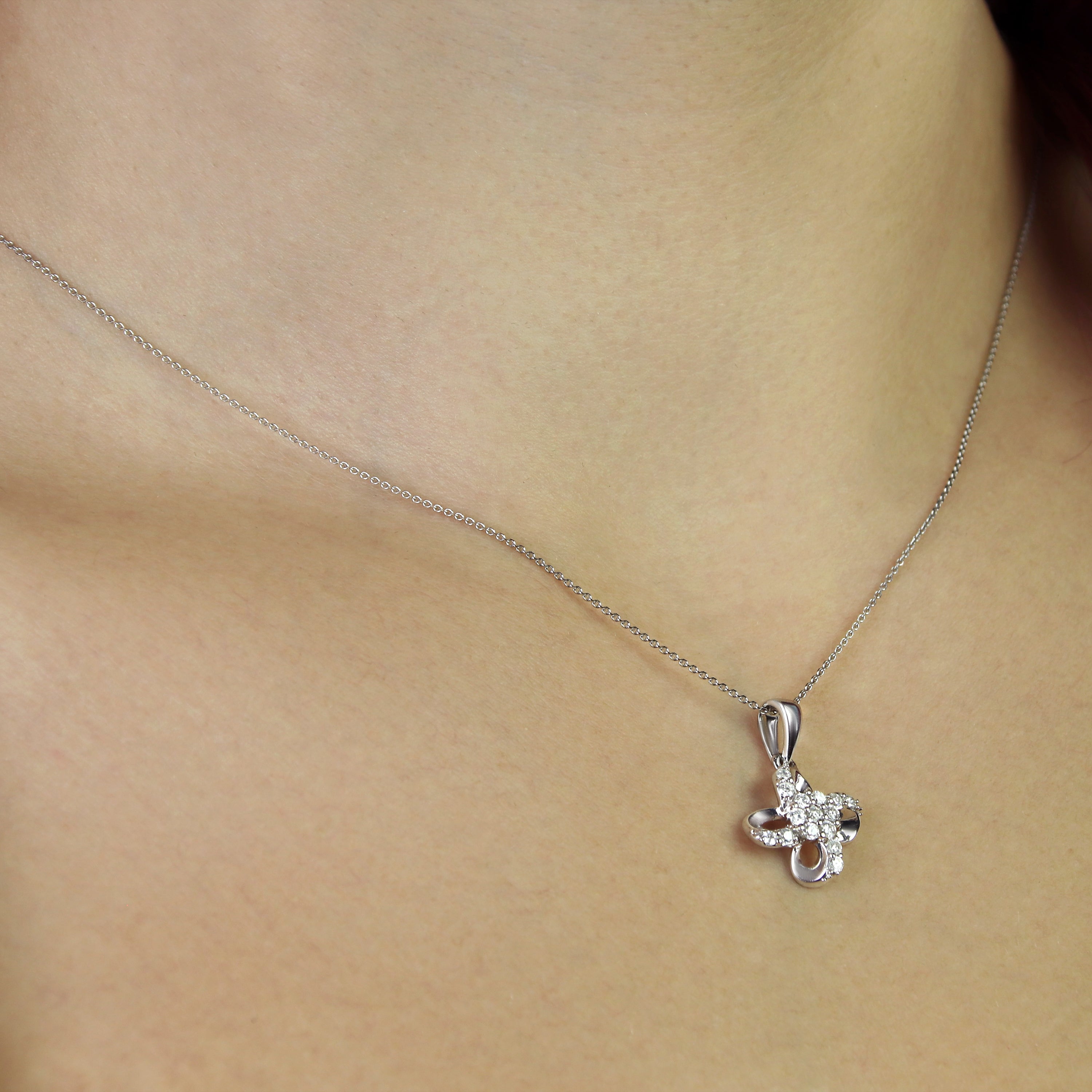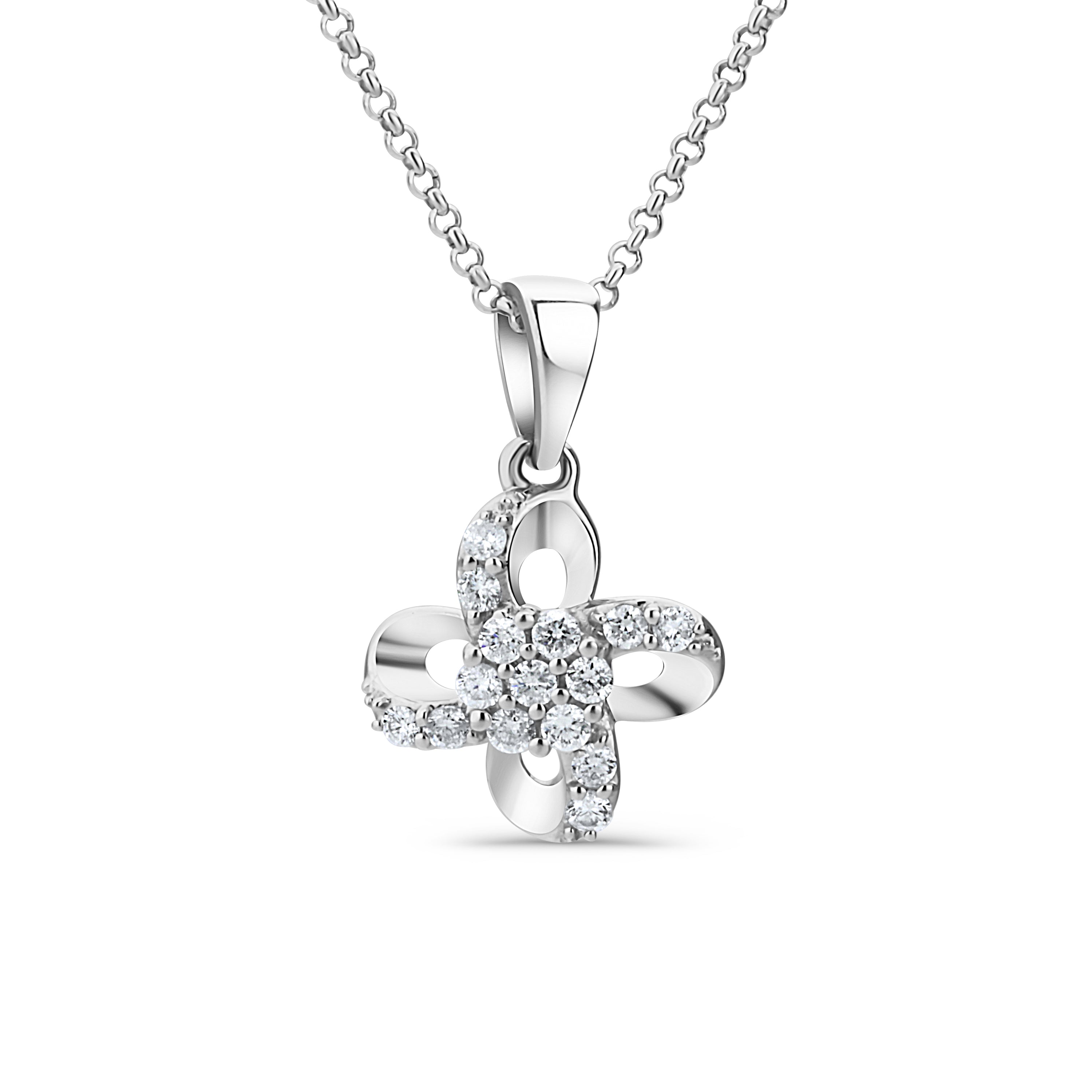 OROITALIA flower charm in 14kt white gold, with 15 natural diamonds ROUND cut, 0.25ct, color H, clarity VS.