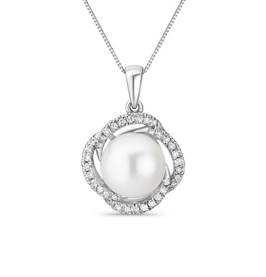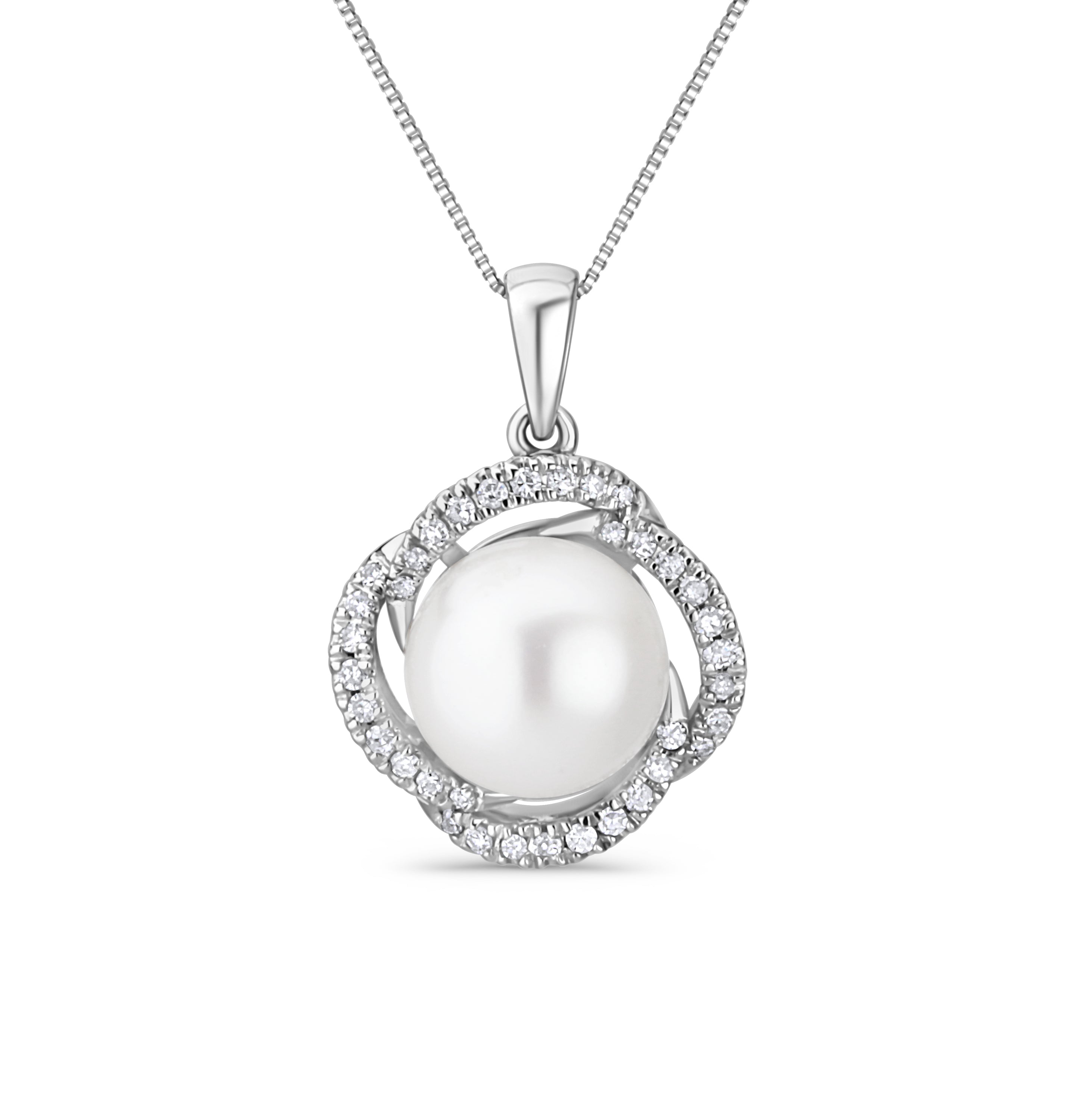 OROITALIA Charm in 14Kt White Gold with Akoya Cultured Pearls and Natural Diamonds.