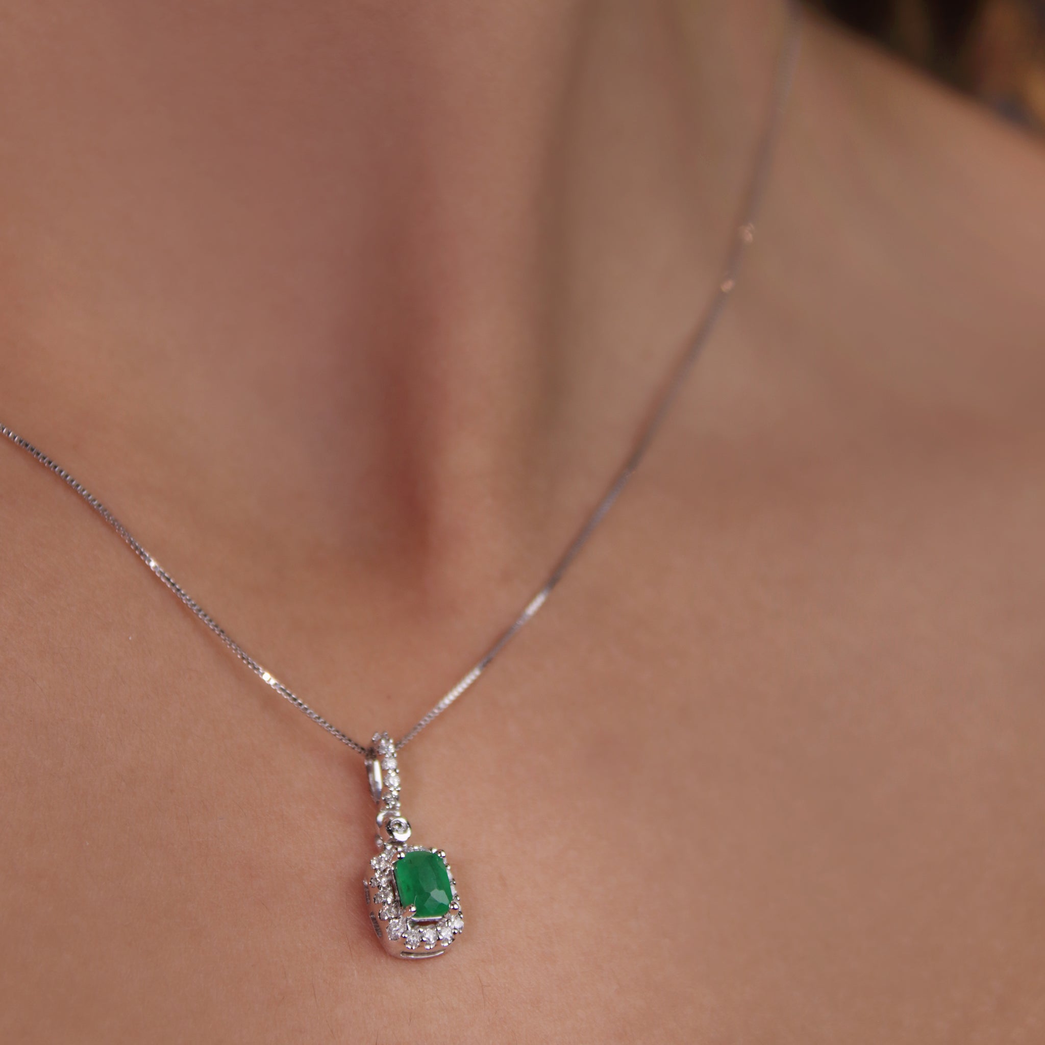 OROITALIA charm in 14kt white gold, with 1 OVAL cut emerald, 0.40ct, A certificate and 22 ROUND cut natural diamonds, 0.16ct, color H, VS clarity.