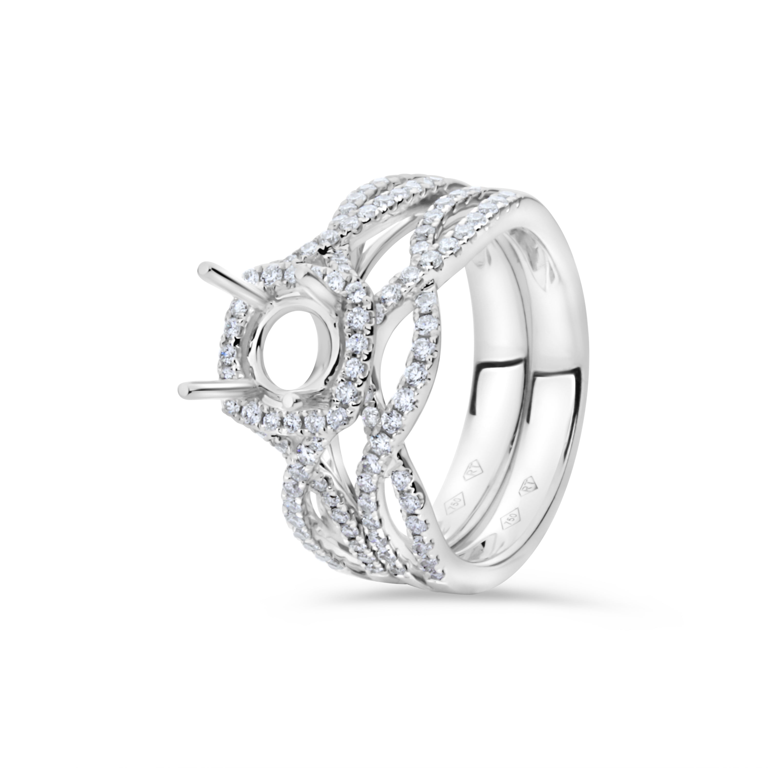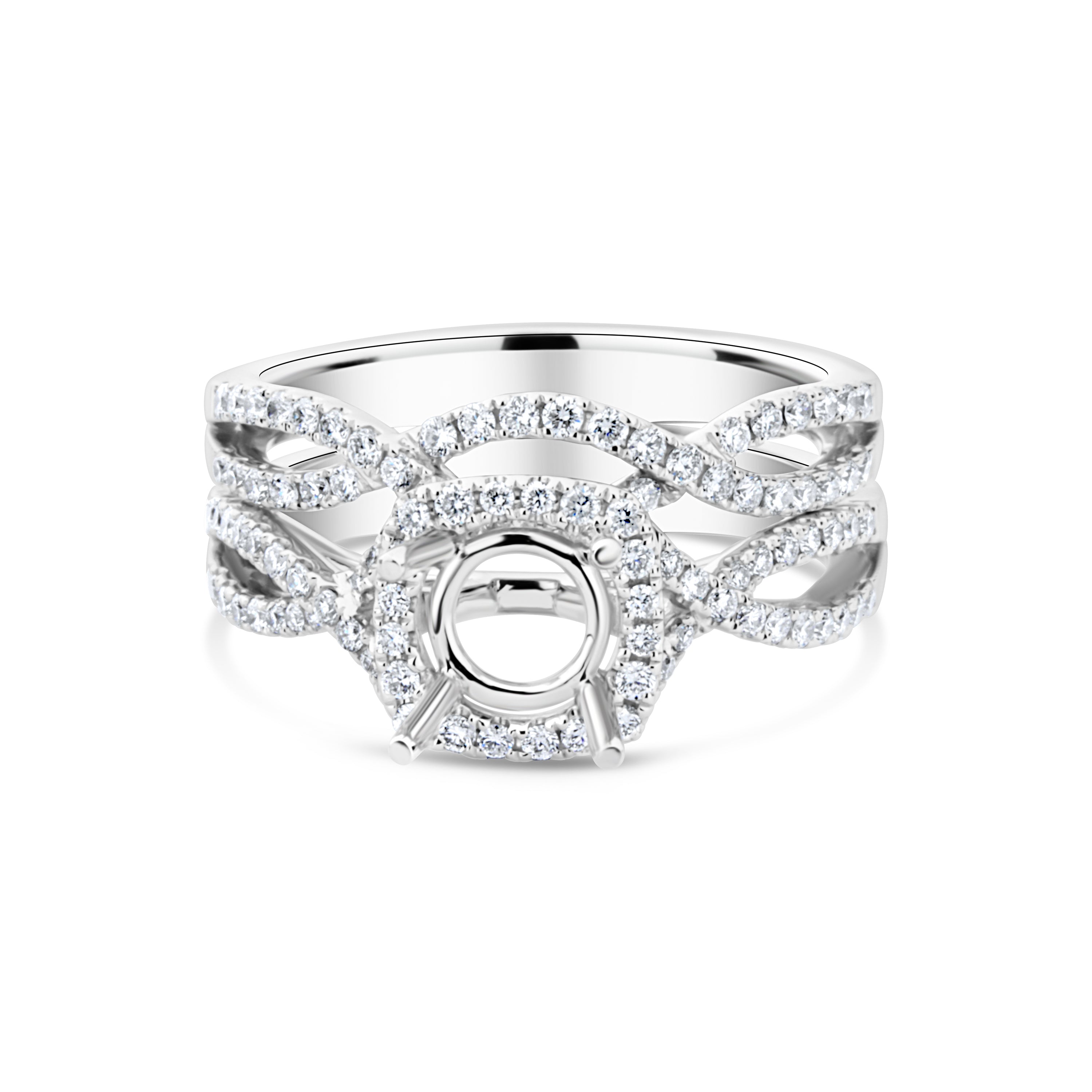 Celebrate your love with this stunning 18kt white gold Engagement and Wedding Ring Set Setting, sparkling with 0.61ct. diamonds. The perfect symbol of forever commitment, this elegant set exudes charm and seamless harmony.