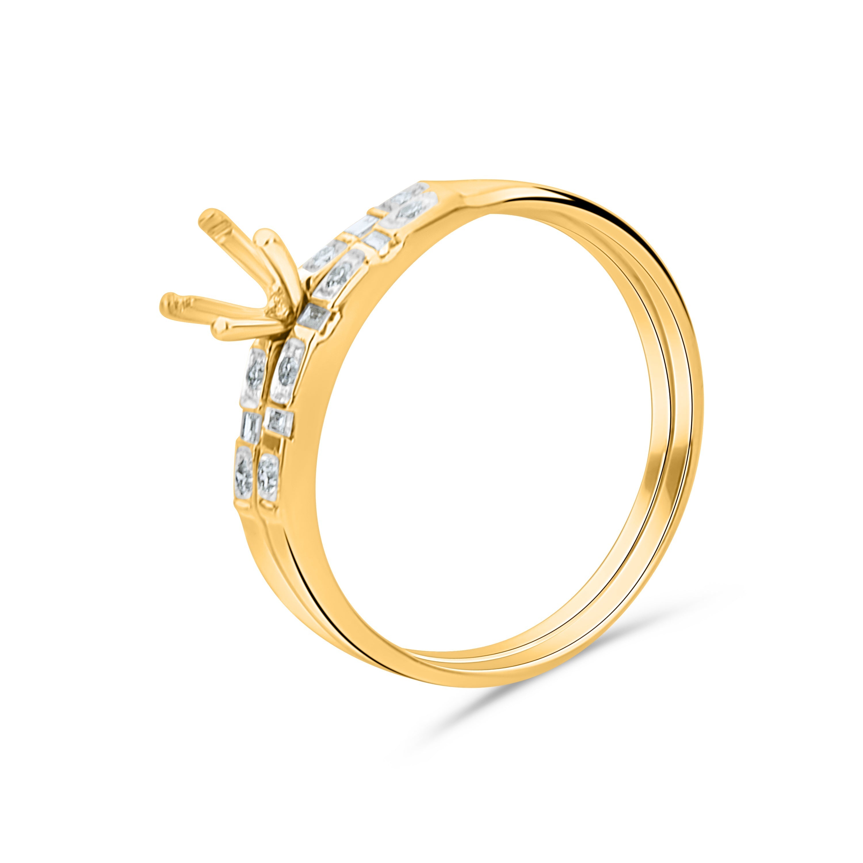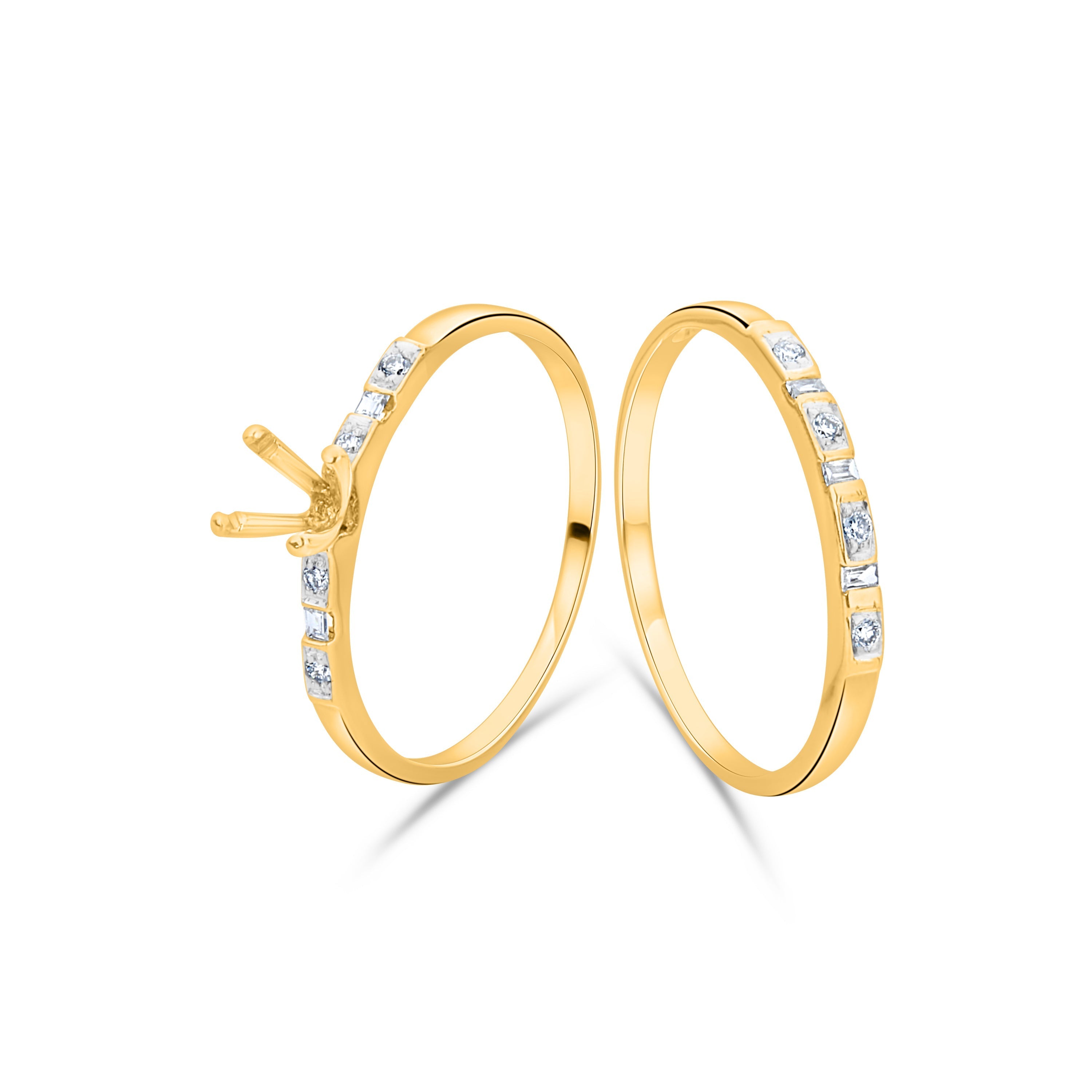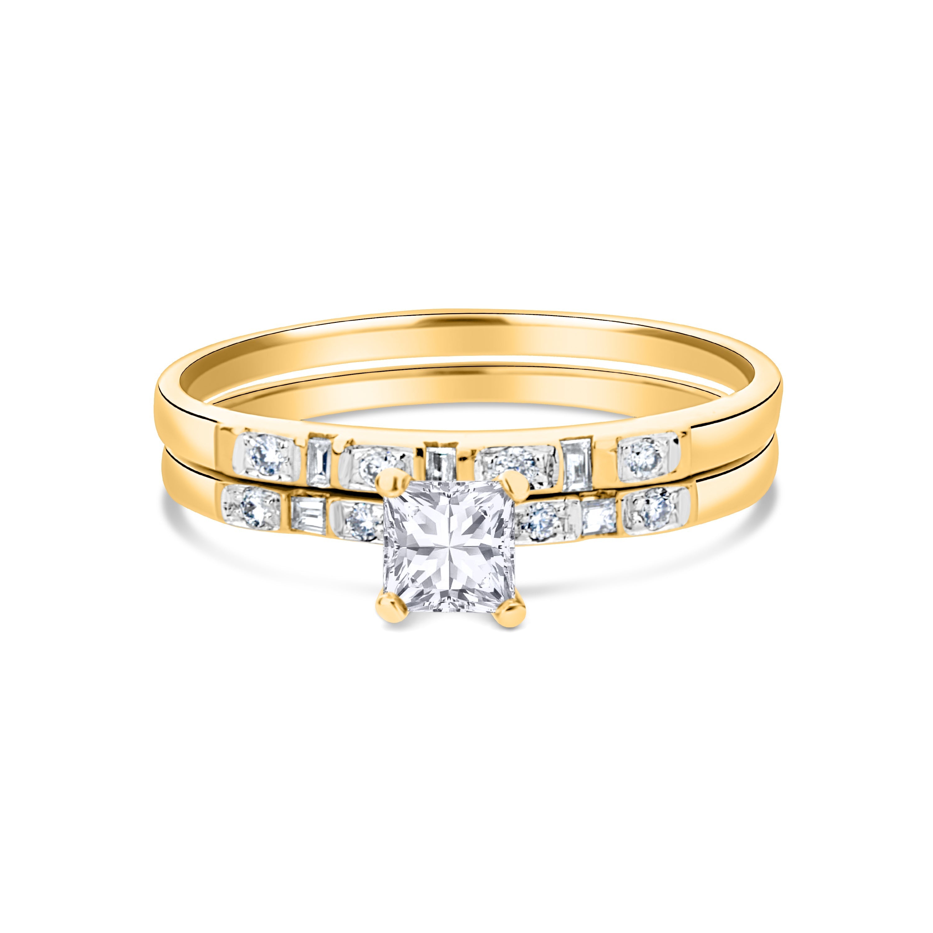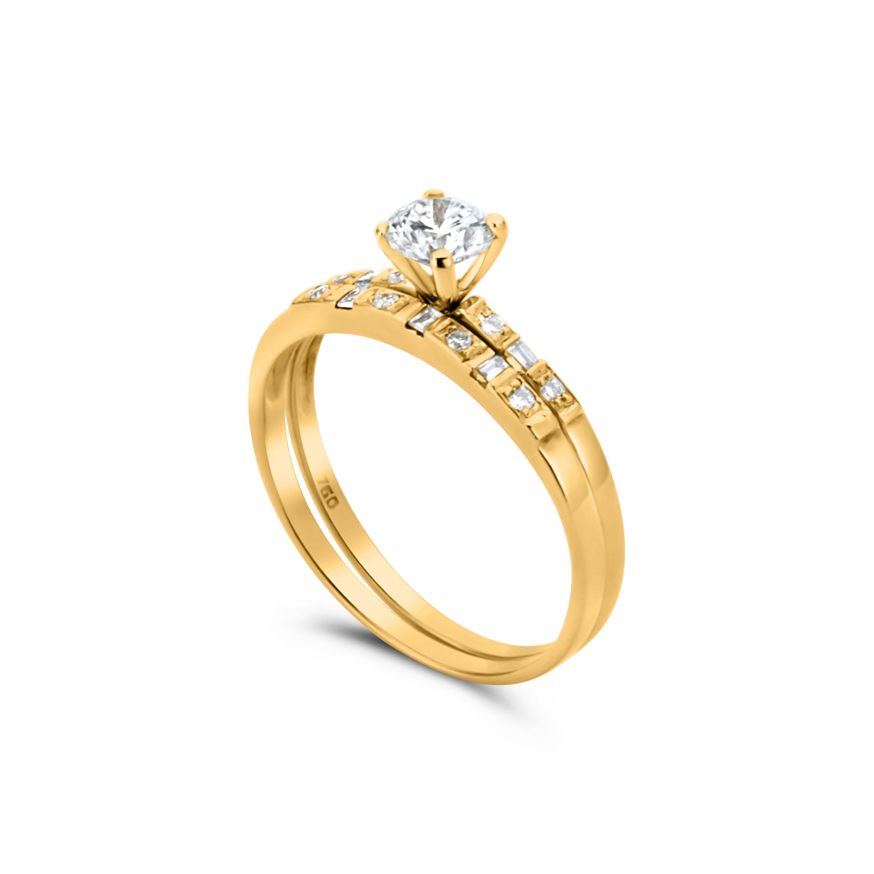 Celebrate true love with this glamorous 18kt yellow gold Engagement and Wedding Ring Set! Featuring a 0.49ct Round diamond and 0.15ct and 0.2ct in diamonds, this exquisite set symbolizes your everlasting bond. Complete with an elegant matching wedding band, it's the perfect choice for your special day.