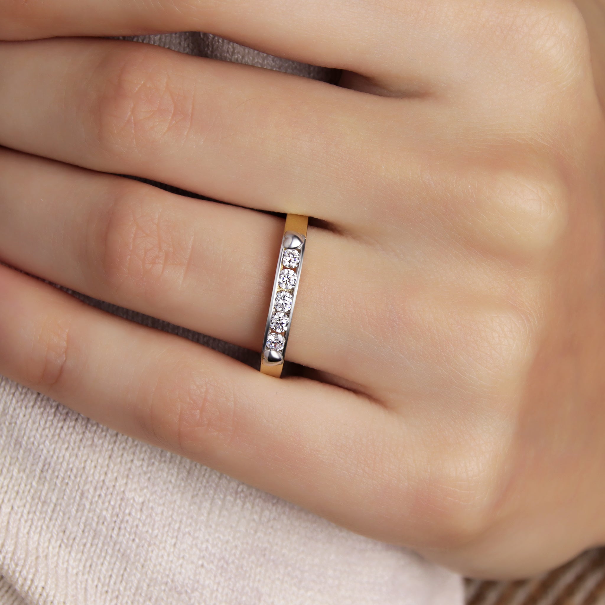 BAND RING IN 18KT YELLOW GOLD, WITH CUBIC ZIRCONIA.