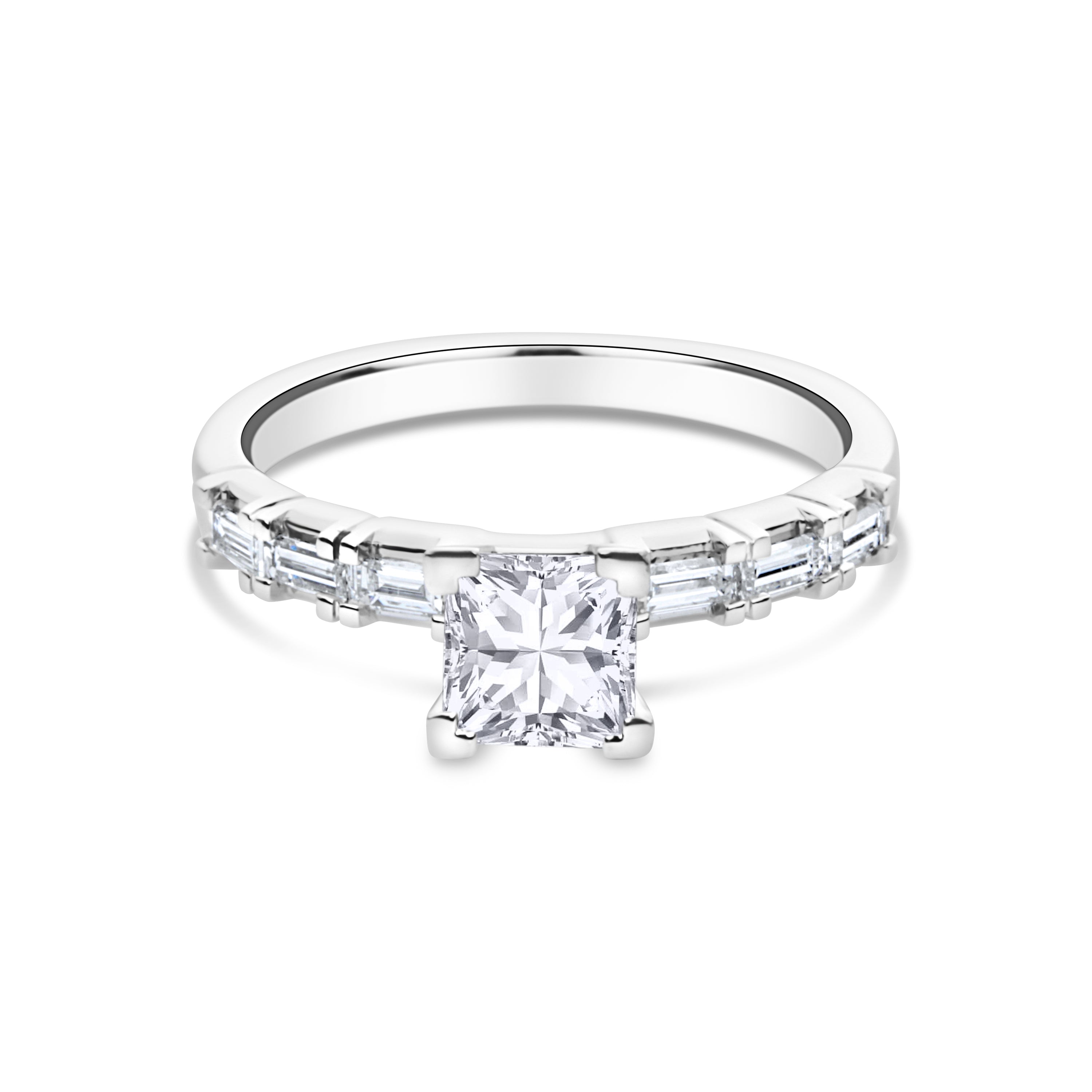ENGAGEMENT RING SETTING IN 18KT WHITE GOLD WITH 0.36CT BAGUETTE DIAMONDS.