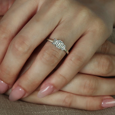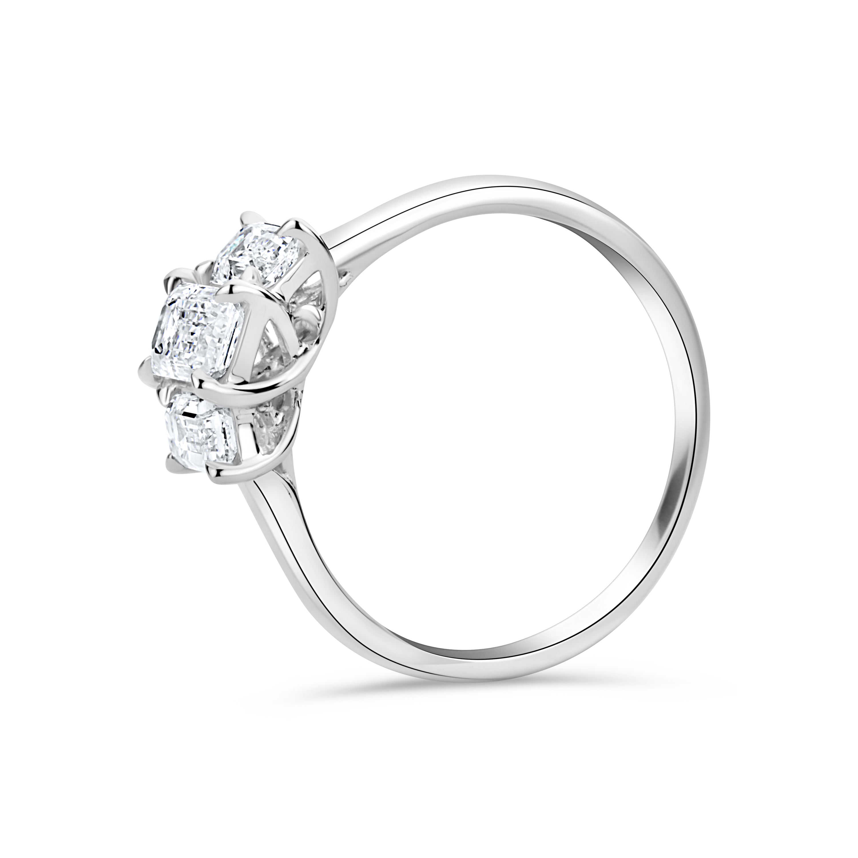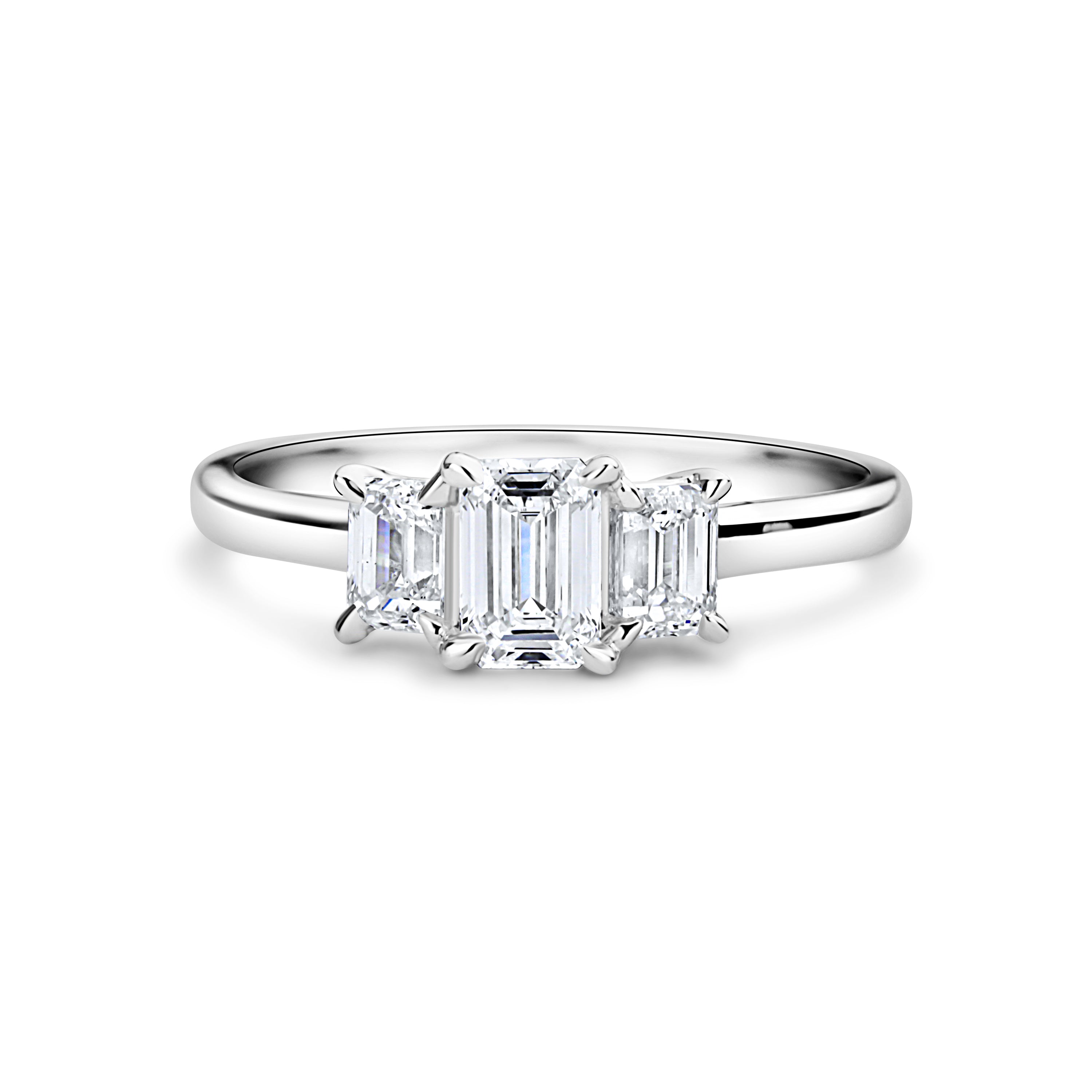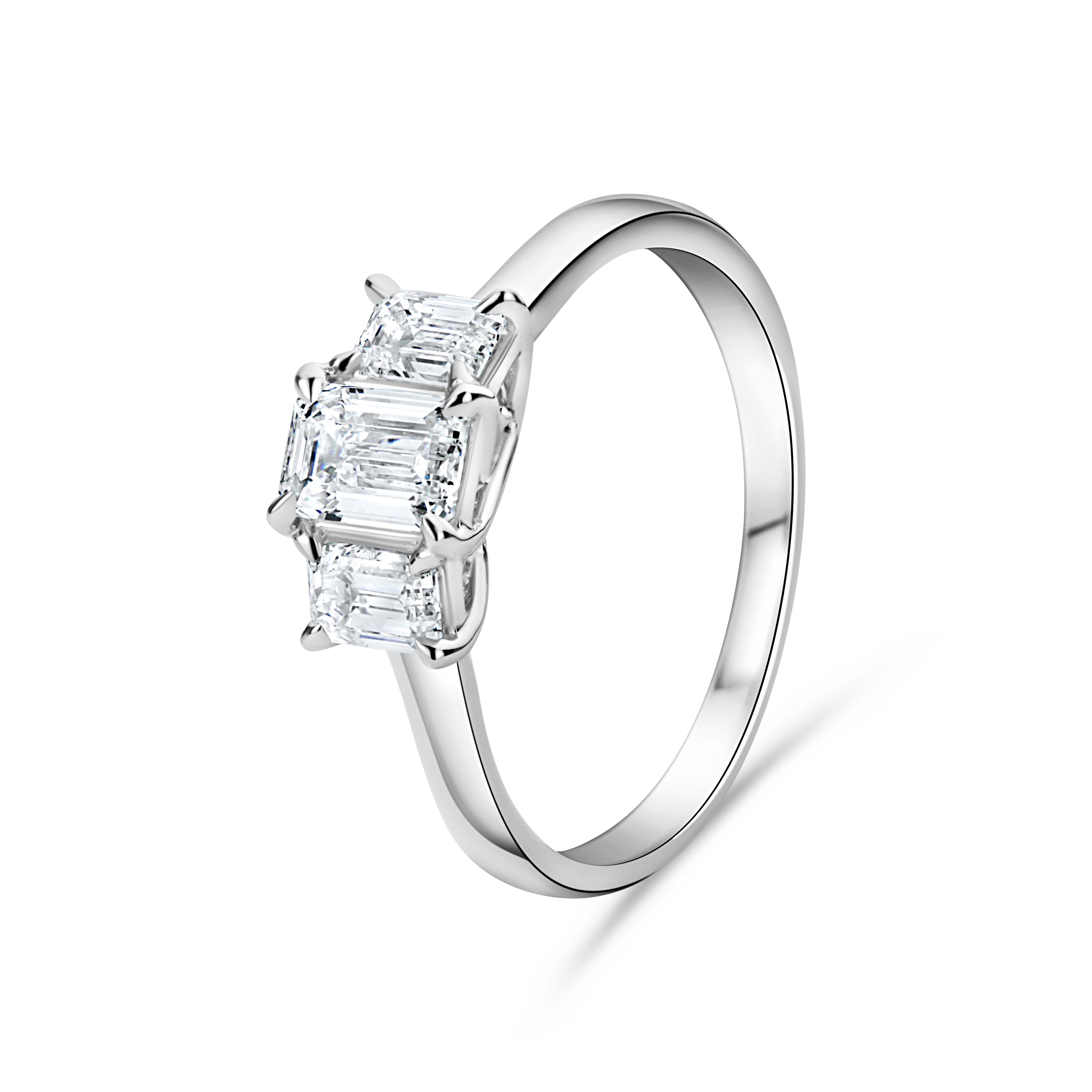 TRILOGY RING IN 14KT WHITE GOLD WITH 1.00CT LAB-CREATED EMERALD CUT DIAMONDS.