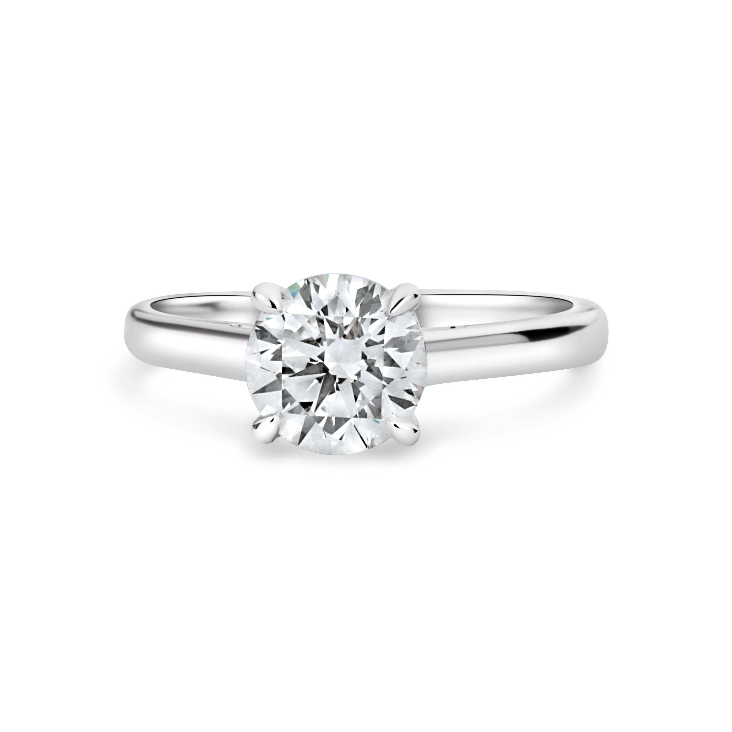 Celebrate your love with this stunning solitaire ring in 14kt white gold, featuring a dazzling 1.55ct laboratory created diamond. This ring is a symbol of eternal love and commitment, perfect for that special someone in your life. The sparkly diamond is sure to catch eyes and hearts, making it a perfect addition to any celebration. Give the gift of everlasting love with this exquisite solitaire ring.