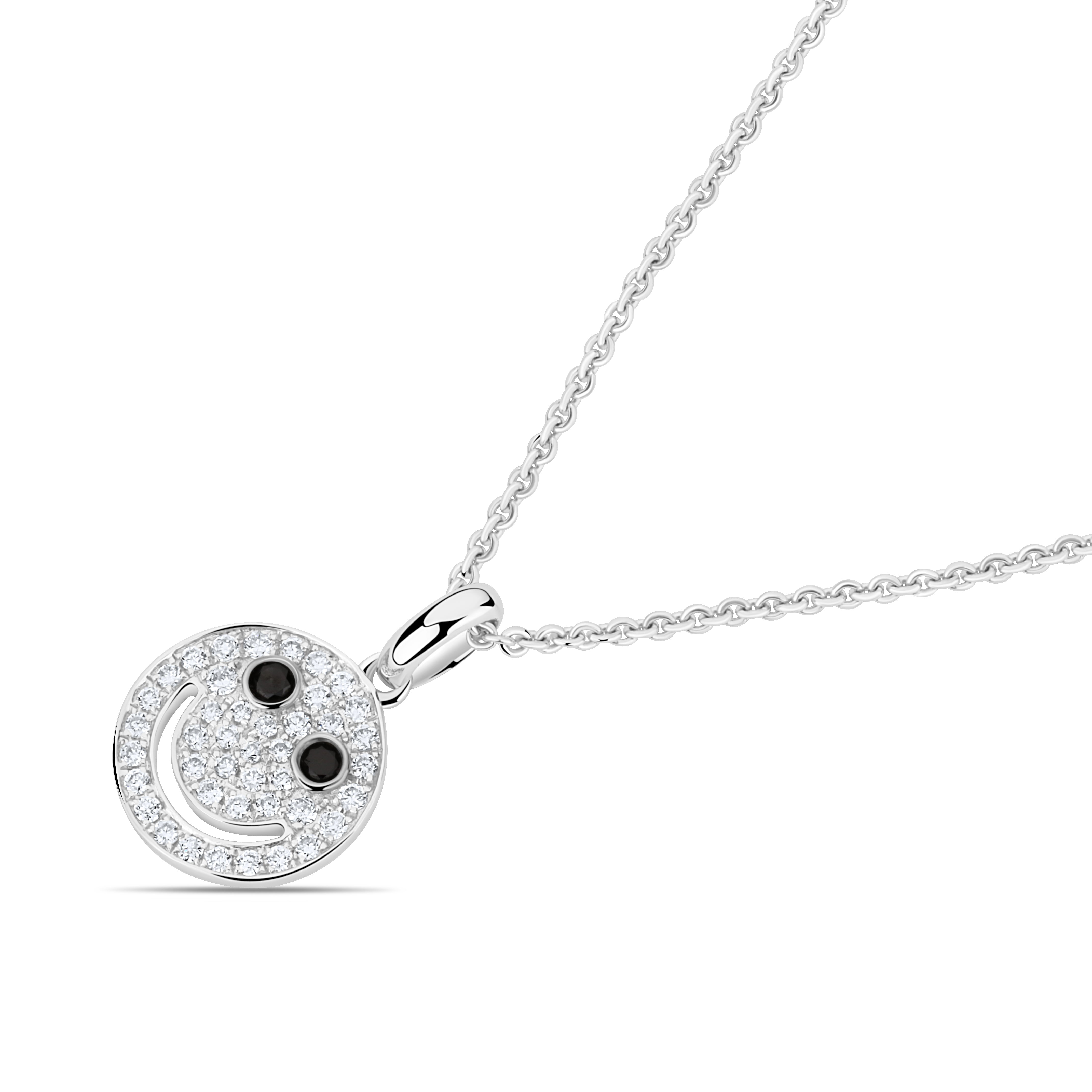 OROITALIA Smiley Charm Chain in 18Kt White Gold with Natural Diamonds.
