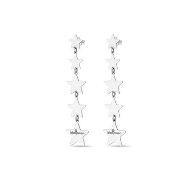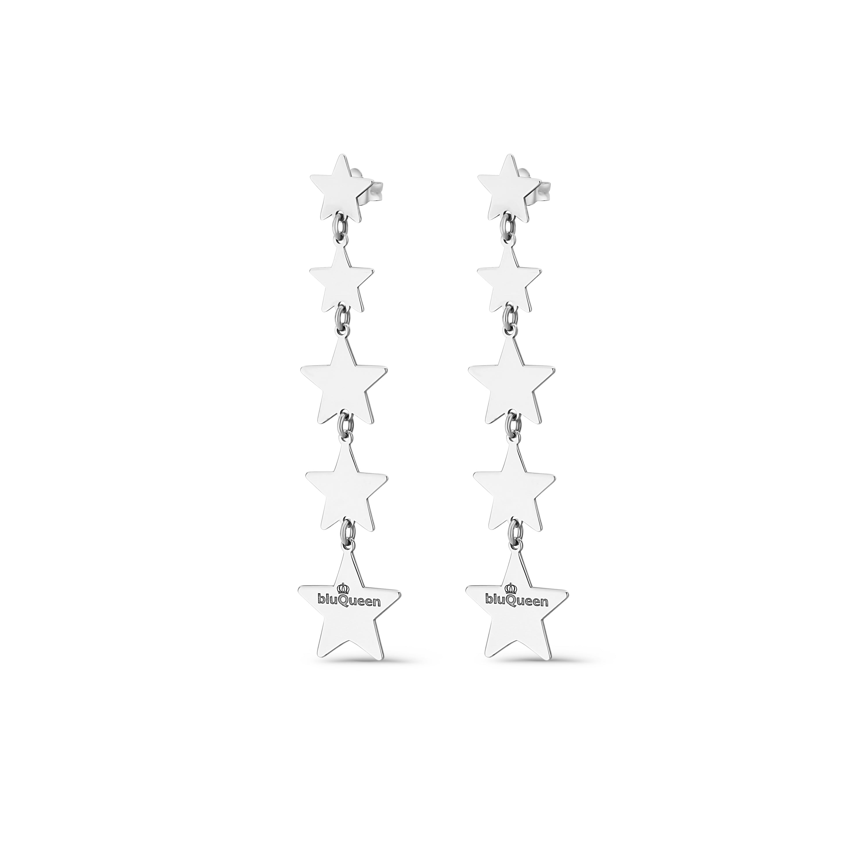 BLUQUEEN dangling earrings with stars in 925 silver, butterfly closure.