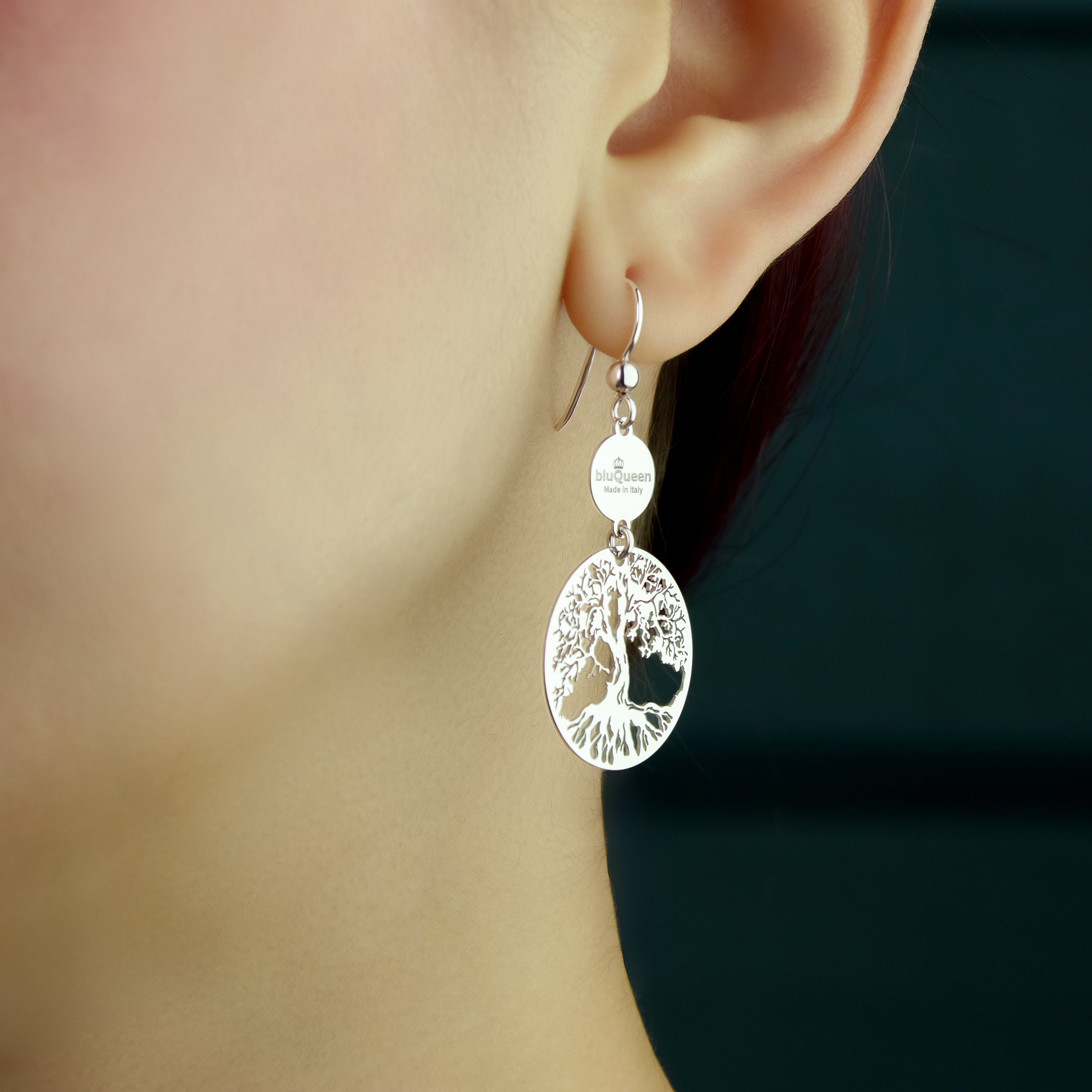 BLUQUEEN Tree of Life Hanging Earrings in 925 Silver.