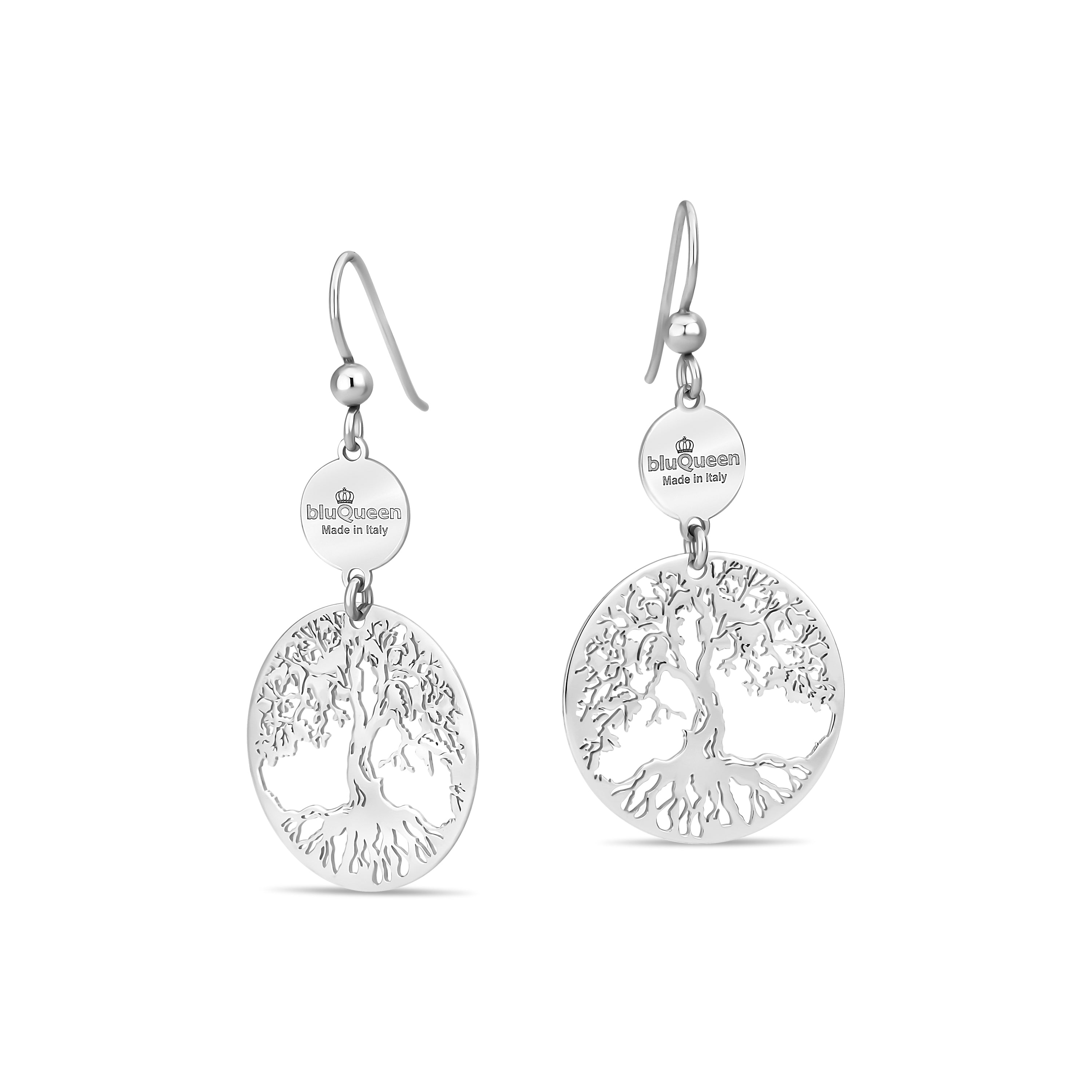 BLUQUEEN Tree of Life Drop Earrings in 925 Silver, Hook Clasp.