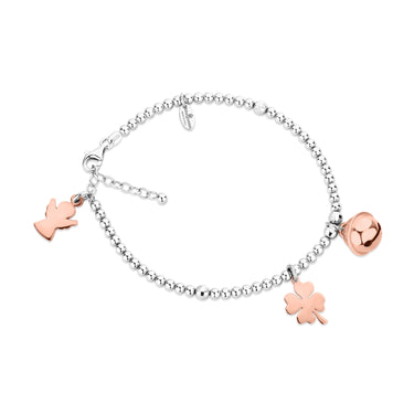 BLUQUEEN Beaded Bracelet with Bell, Clover and Angel Charms in 925 Silver.