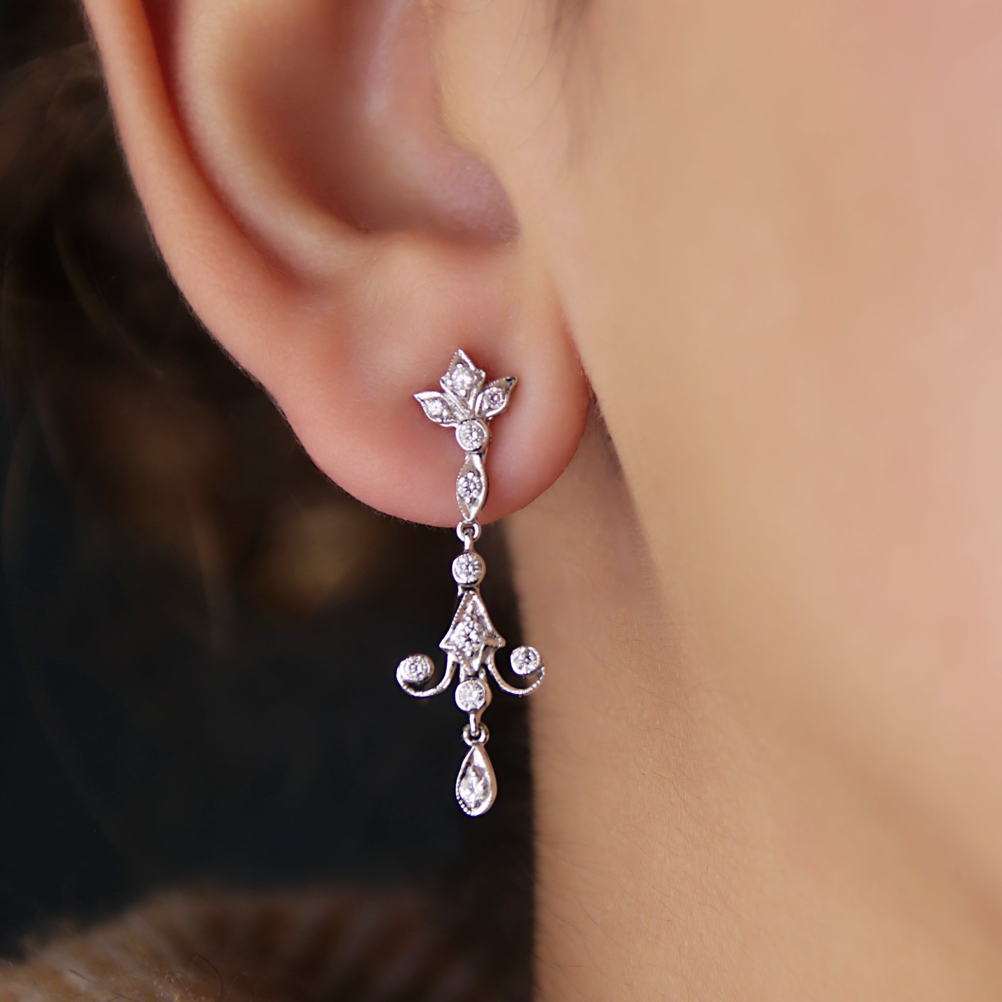 OROITALIA hanging earrings in 18kt white gold, butterfly clasp, with 22 natural diamonds ROUND cut, 0.46ct, H color, VS clarity.