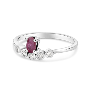 OROITALIA fashion ring in 18kt white gold, size US 7, with 1 OVAL cut ruby, 0.22ct and 5 natural ROUND cut diamonds, 0.12ct, color H, VS clarity.