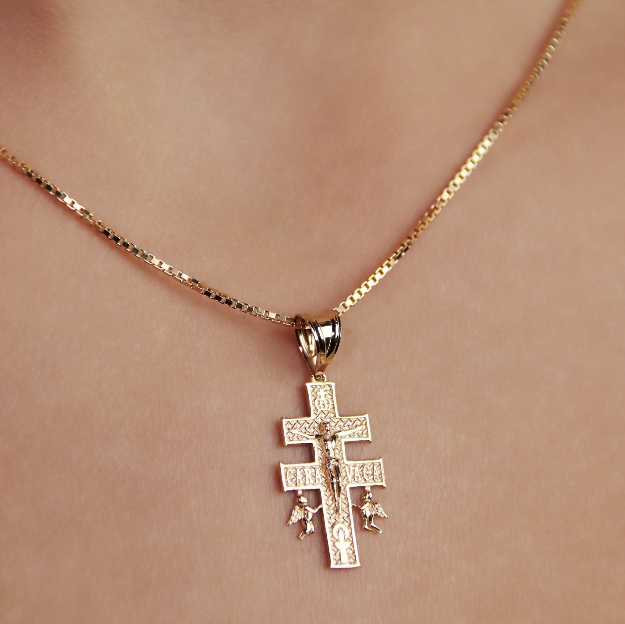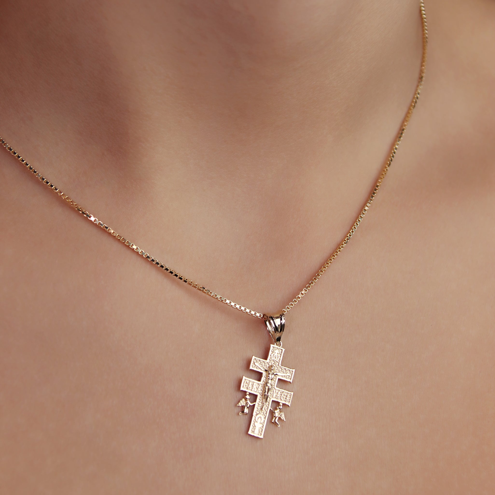 Elevate your style with this exquisite Caravaca Cross Pendant crafted in luxurious 18kt yellow gold. The intricate detailing and elegant design make it a sophisticated addition to any jewelry collection. Symbolizing faith and protection, this pendant is a timeless piece that can be worn alone or paired with other pendants for a personalized look. Embrace the beauty and craftsmanship of this stunning Caravaca Cross Pendant and make a statement wherever you go.