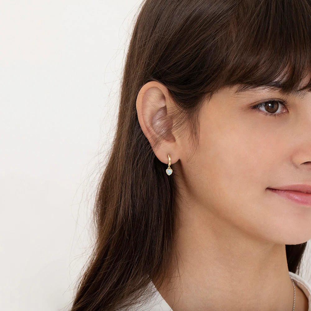 GIOVE MIO Huggies Heart Pendant in 925 Silver Plated in 18Kt Yellow Gold with Opals.