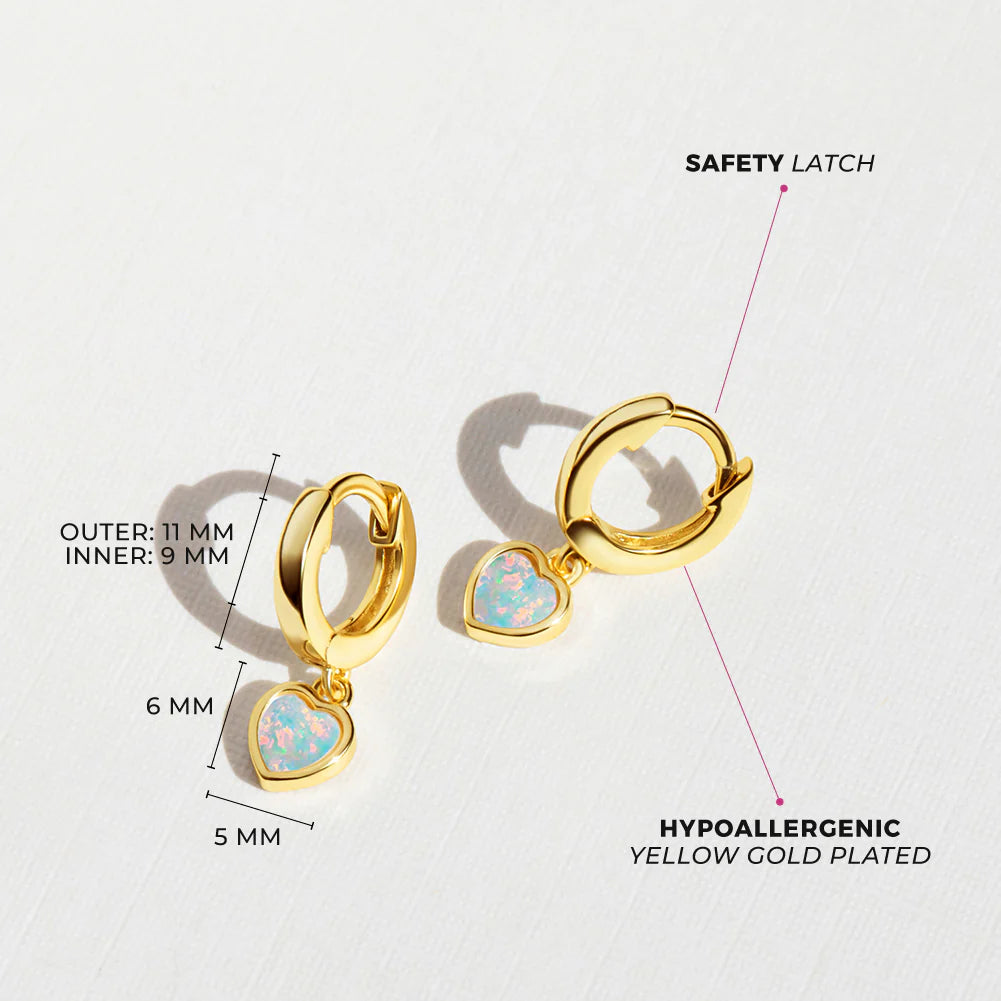 GIOVE MIO huggies heart pendant in 925 silver plated in 18kt yellow gold, huggie clasp, with 2 opals.
