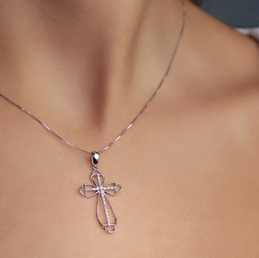 COLGANTE CRUZ EN ORO BLANCO DE 18 KT, CON DIAMANTE NATURAL DE 0,18 CT.