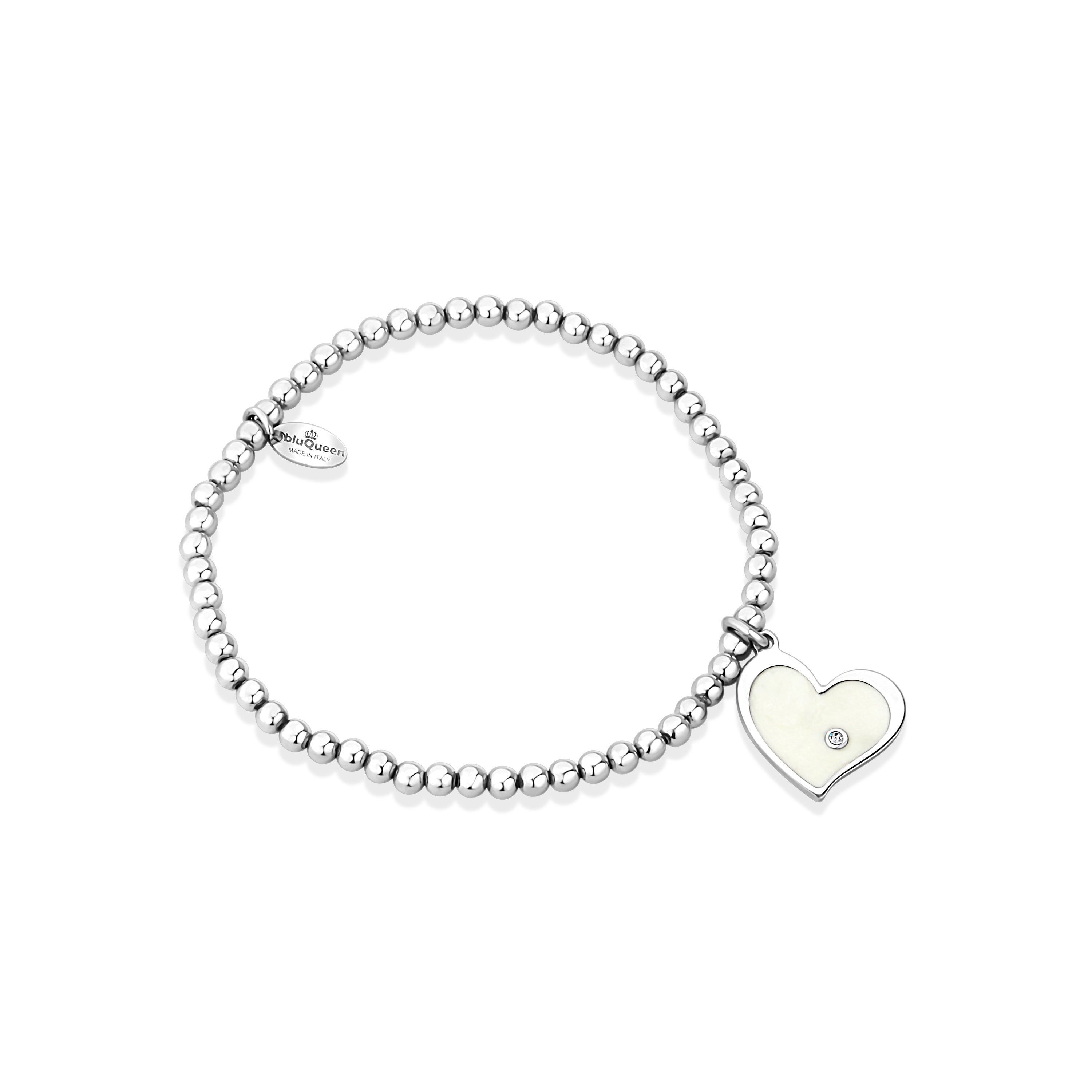 BLUQUEEN pulsera con cuentas y dije de corazón en plata 925 , con circonia cúbica.