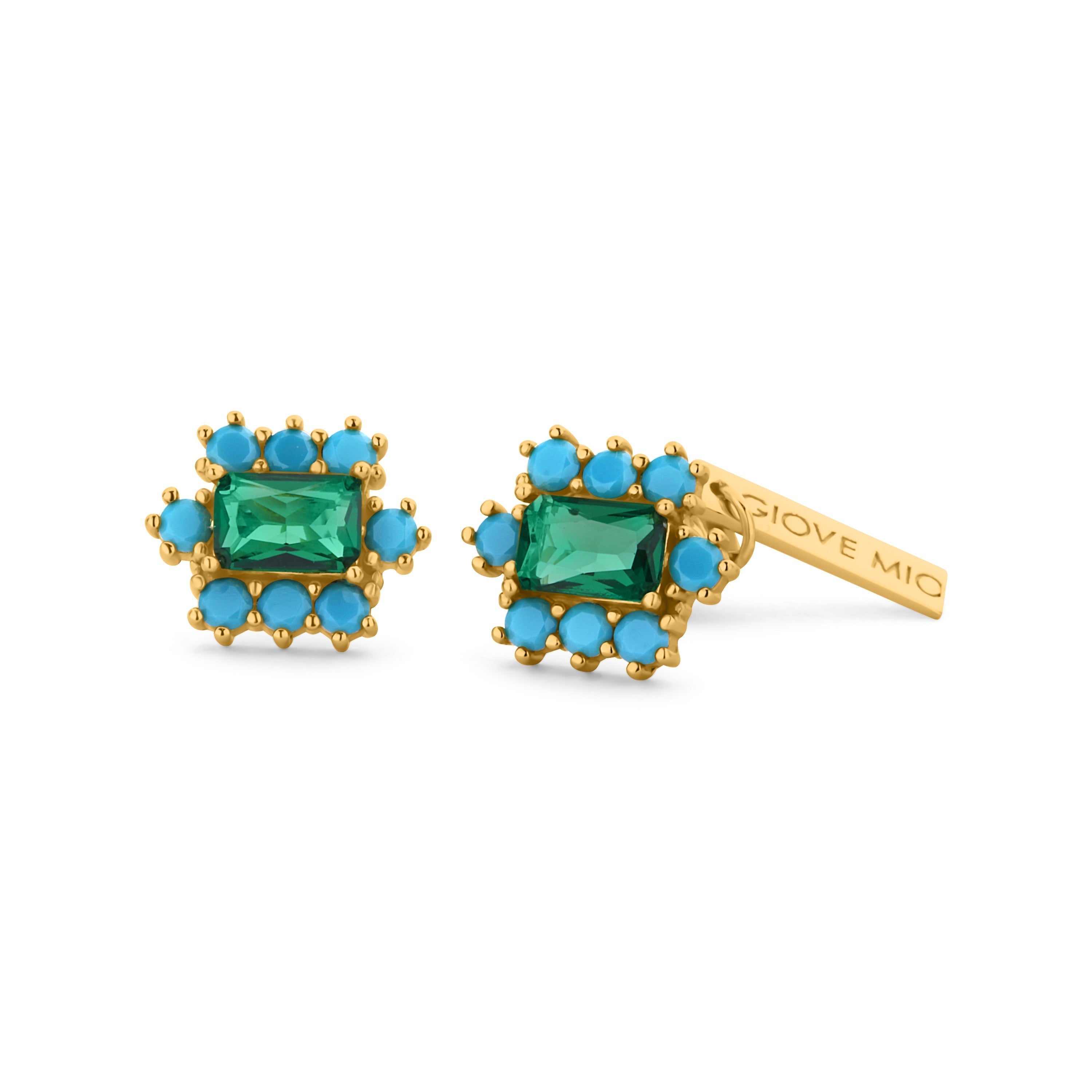 GIOVE MIO Studs Celina Green en Plata 925 Bañada en Oro Amarillo de 18Kt.