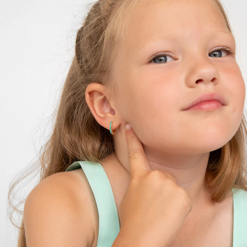 GIOVE MIO Huggies en Plata 925 Bañada en Oro Amarillo de 18Kt con Turquesas.