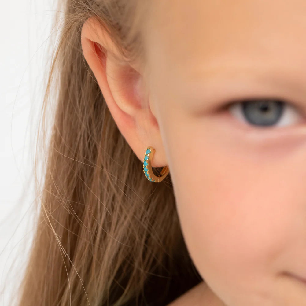 GIOVE MIO huggies en plata 925 bañada en oro amarillo de 18kt , cierre de huggie, con 14 turquesas.