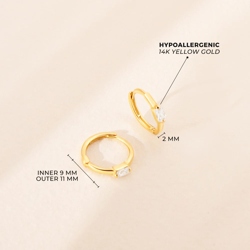 GIOVE MIO baby earrings in 14kt yellow gold, with 2 cubic zirconia BAGUETTE cut.