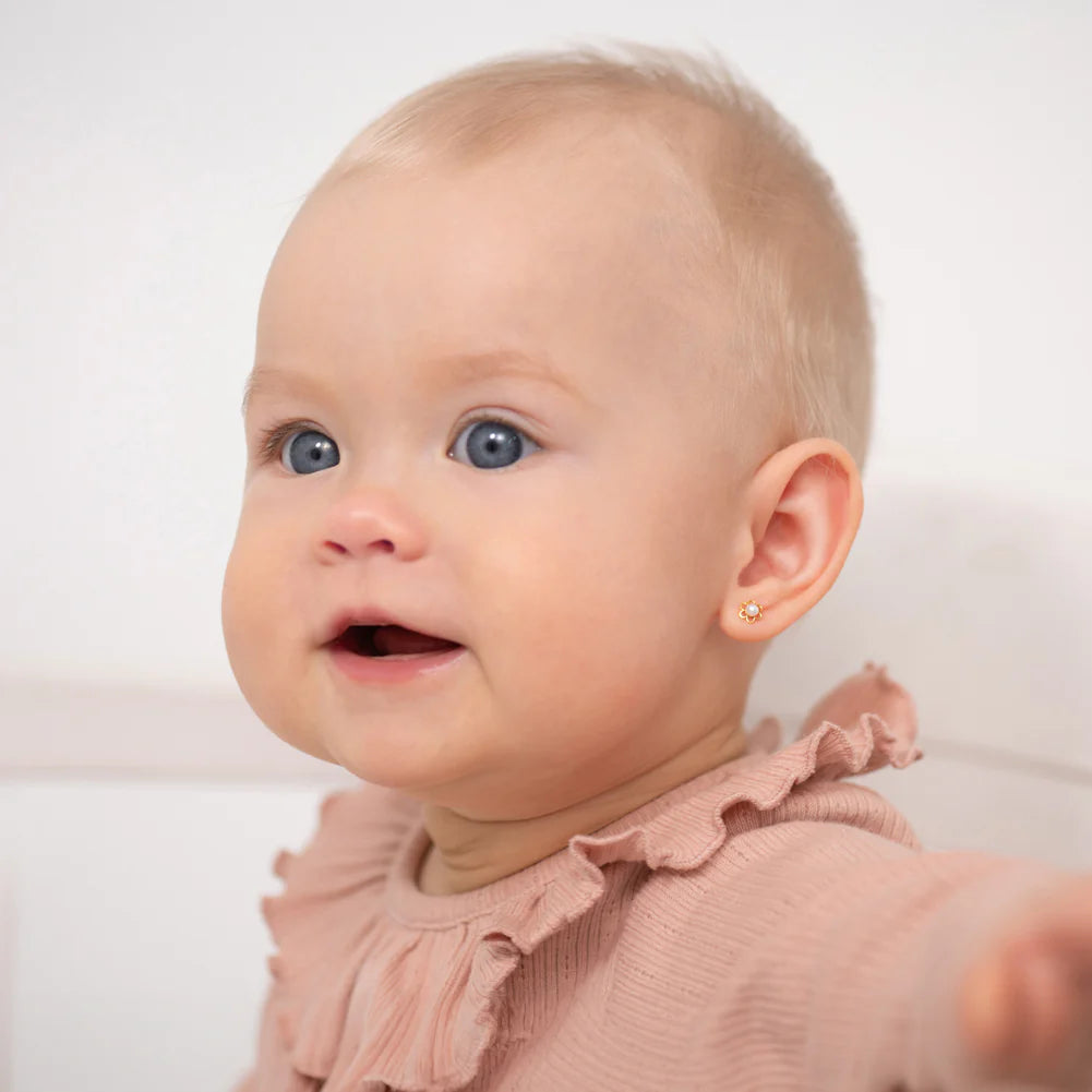 GIOVE MIO baby flower earrings in 14kt yellow gold, with 2 pearls.