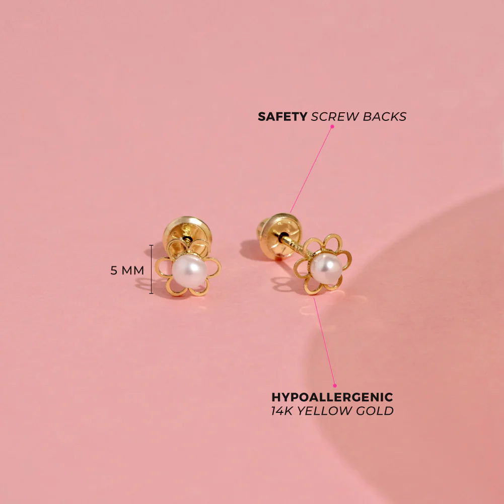 GIOVE MIO Baby Flower Earrings in 14Kt Yellow Gold with Pearls.